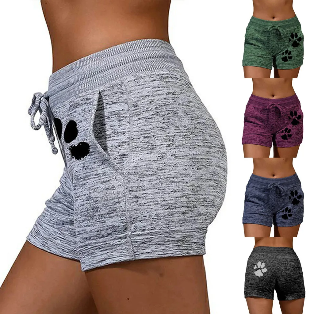 Купить New Summer Fast Drying Drawstring cat paw print shorts Lace Up High Waist Elastic Cotton Short Women Beach Casual Sport Shorts | Женская