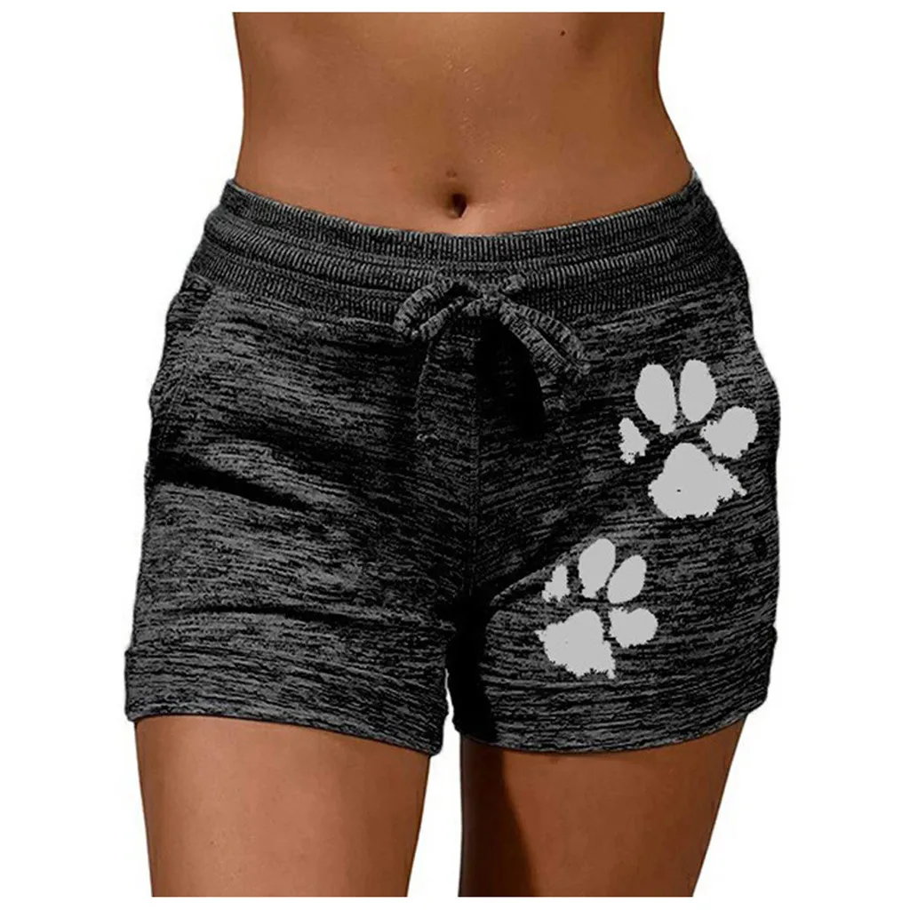 New Summer Fast Drying Drawstring cat paw print shorts Lace Up High Waist Elastic Cotton Short Women Beach Casual Sport Shorts