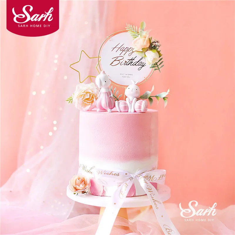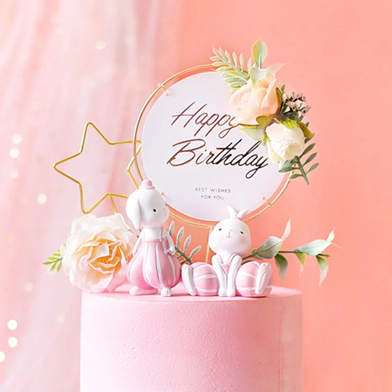 Розовый Железный искусственный цветок, топпер для торта «С Днем Рождения» звезда, кролик, украшение для свадьбы, товары для выпечки, подарок невесте