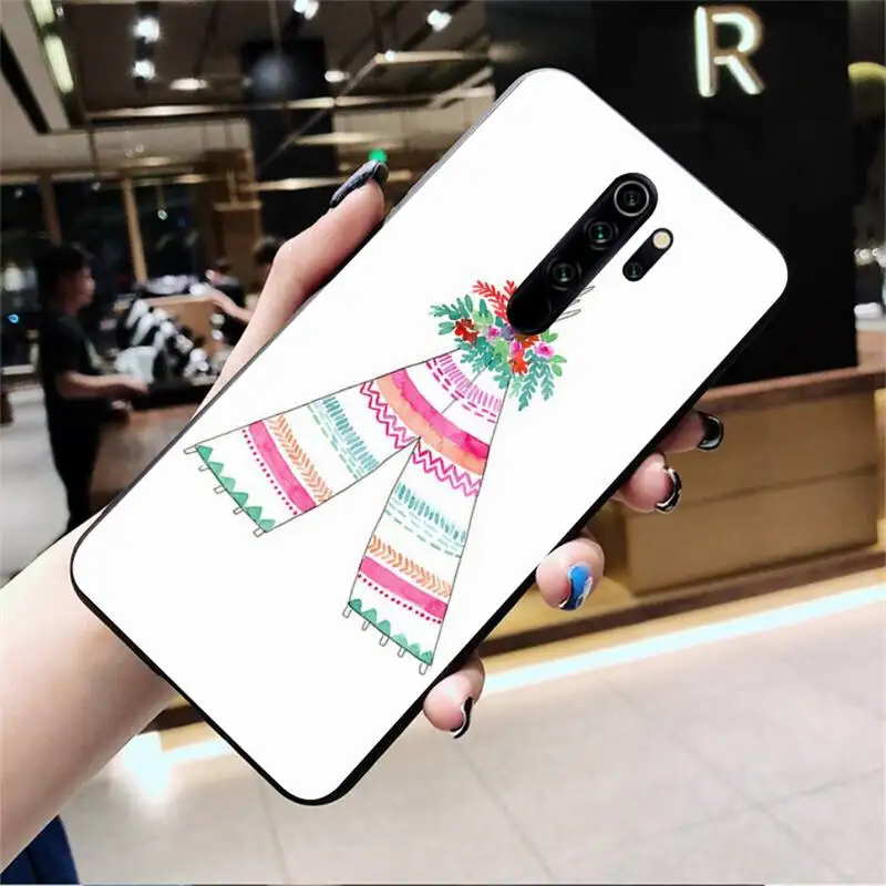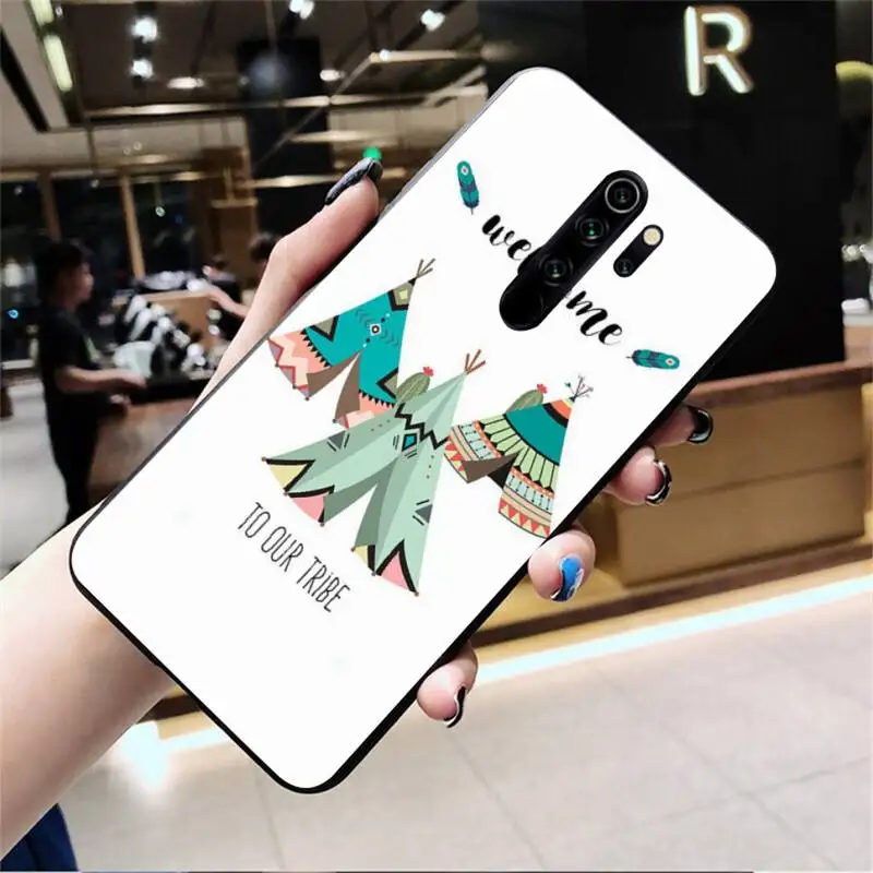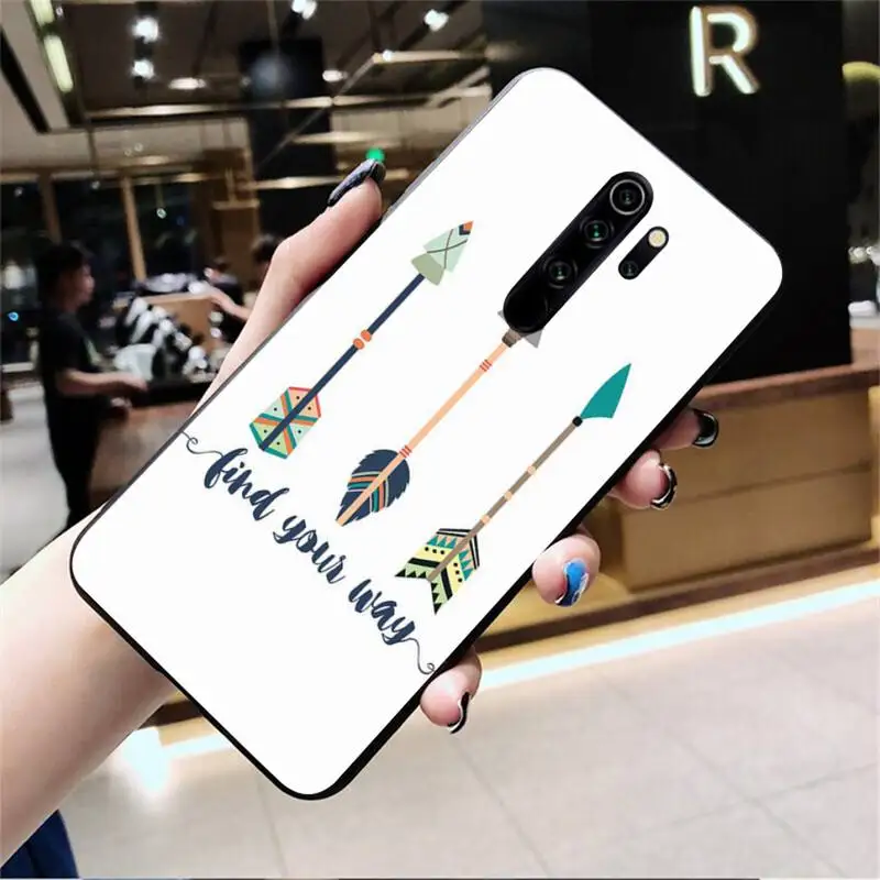 Boho Western Teepee Arrows Feathers Silicone Black Phone Case for Redmi Note 9 8 8T 8A 7 6 6A Go Pro Max K20 Мобильные телефоны и - купить
