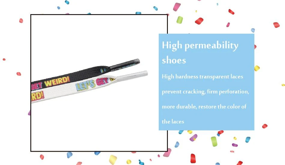 Материал: полиэстер + пластик Функция/сочетание/Применение: шнурки для обуви, шнурки для талии, веревки для шляпы и т. д. Цвет/разноцветная комбинация: черный/белый, с буквенным принтом Характеристики: 60-180 см * 8 мм Диаметр/Ширина: 0,8 см Тип формы: плоский Головка шнурков: прозрачный пластик Вес брутто: 40 г Сертификат: Oeko-tex-100,ISO9001,SGS,CE Посылка: 1 пара/opp полиэтиленовый пакет Индивидуальные: цветовое сочетание/длина и ширина/печать логотипа, пожалуйста, свяжитесь с нашей службой поддержки клиентов