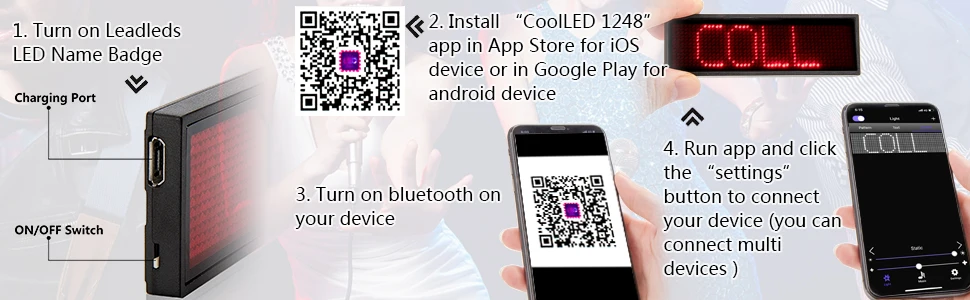 Светодиодный значок может помочь вам привлечь широкий спектр внимания в различных общественных местах, отличный зрелище!Светодиодный значок имени может изменить слова по желанию, поддерживает несколько языков. 4. Выбор яркости 100% 75% 50% 25%, различные продукты яркости имеют разное время использования, но не волнуйтесь, светодиодный Тег Имени будет работать в режиме полного светильник в течение 12 часов или дольше; Регулируемая скорость шрифта, эффект отображения, левый сдвиг, правый сдвиг, мерцание, Дрожание и другие эффекты, привлекают больше внимания для вас, это лучший выбор со стороны.Спецификация:Цвет: красныйПиксели: 12*48Размеры: 3,8*1,1 дюймов (96x28x6 мм)Дисплей: Горизонтальная прокруткаУправление приложением: CoolLED1248Система поддержки программного обеспечения: iOS или androidДрайверы: не нужен драйвер, не нужен компакт-диск и не беспокойтесь о потере программного обеспечения, подключи и работайМетод ввода: Введите через приложение bluetooth для смартфона или компьютераПоддерживаемые языки: несколько языковИсточник питания: литиевая батарея 210 мАчЗарядка: 5 В зарядка в течение 2 часовПерсонаж: макс. 750 буквы на прокрутки режим и 5,5 буквы на статическом режиме.Регулировка яркости: 4 уровня (25%,50%,75%,100%) при длительном нажатии на переключатель яркостиРежимы износа: Встроенный магнит + булавкаИспользование: пряжка на одежде или место, которое может быть адсорбировано магнитом.Детали упаковки:-Светодиодный bluetooth с именем Coolbird X 1-USB кабель X 1 (Micro-USB,USB2.0)-Инструкция на английском языке X 1