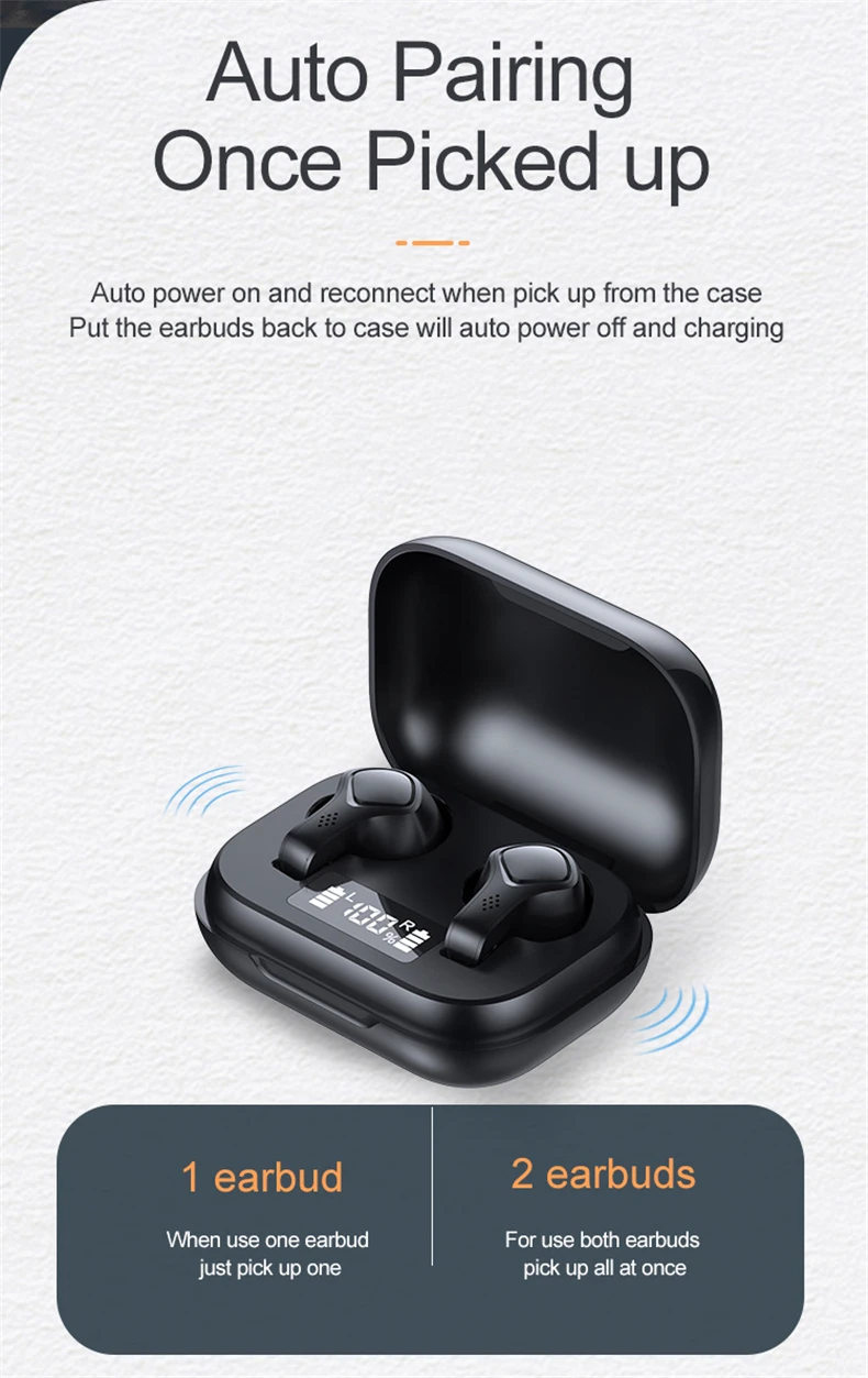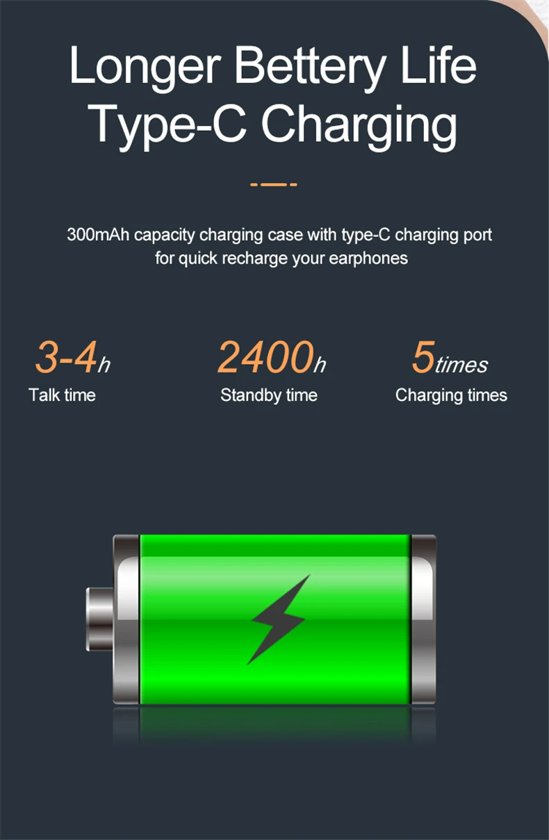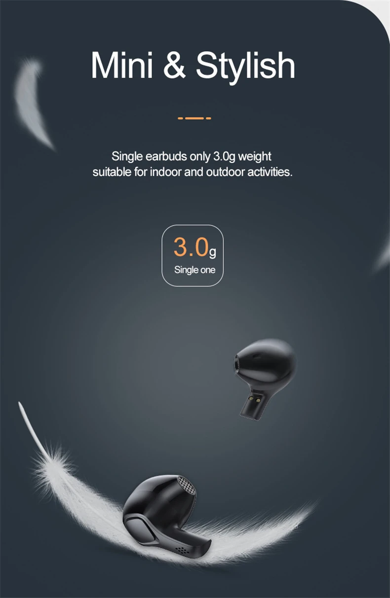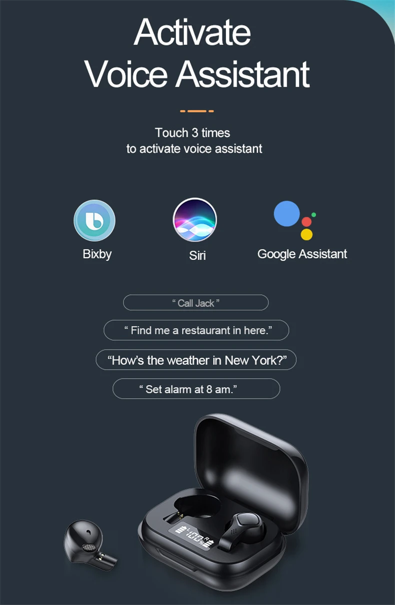 Продукт Особенности: 1, Bluetooth V5.0, Поддержка большинства устройств bluetooth с более низким энергопотреблением 2, с водонепроницаемой технологией, больше не нужно беспокоиться о воде и поте 3, 8MMS двойной привод, наслаждайтесь 9D сильным глубоким басом и музыкальным звуком 4, популярная функция сенсорного управления, поддержка коммутационных песен, телефонных звонков и голосовых вызовов. Аксессуары для списка: 2 * Bluetooth наушники 1 * зарядный чехол 1 * USB кабель 1 * Руководство пользователя 3 * чашки для наушников (размер L,M S)