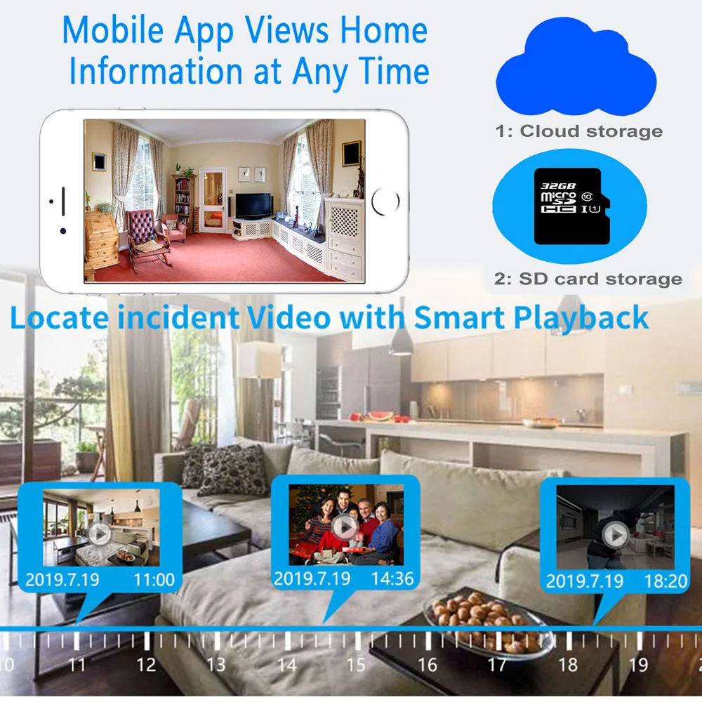 При обнаружении движения камера безопасности отправит оповещение о движении в реальном времени в приложение телефона, электронную почту и запись на sd-карте.