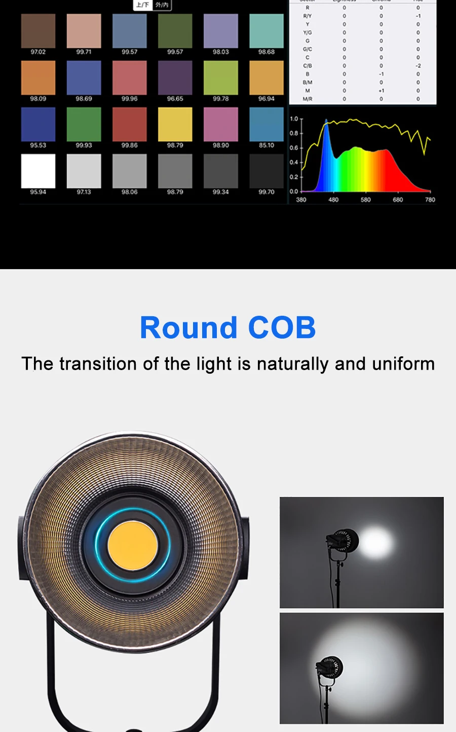 Яркость светильник имеет важное значение, но без точность цветопередачи, тонны время и деньги будут потеряны в постпроизводства. Forza 300 имеет CRI 98 и TLCI 95 означает, что вы можете снимать с уверенностью, зная, что цветопередача будет точной.