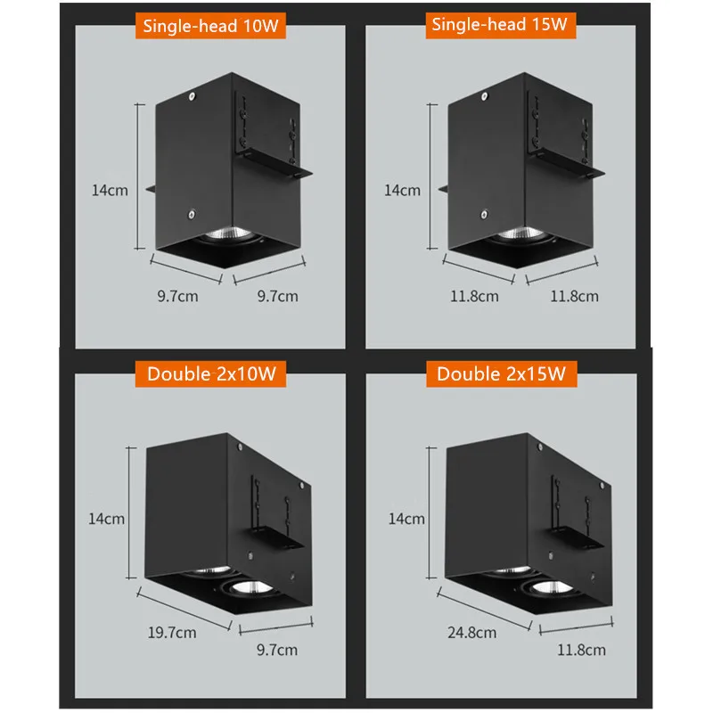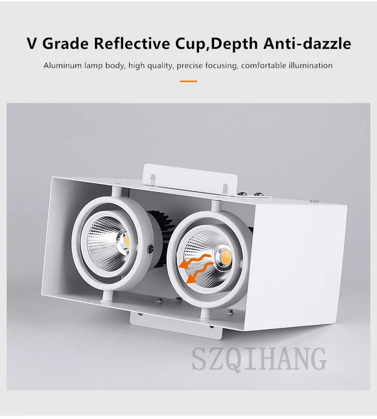 100% Brand New Input: AC85-265V Shell Material: High qualityAluminum, stable and durable. Fast heat dissipation. Long lasting work. Power consumption: 10W, 15W, 2*10W=20W, 2*15W=30W LED light source: High lumen COB LED(close to daily vision, which Eye-protecting) Lumens (lm): 90-100 lm/W Surface color: white/black Color Rendering Index: Ra >85 Light Color:Warm White(2800-3200K),Natural White(4000-4500K),ColdWhite(6000-6500K) Scope: home improvement / commercial ceiling spotlights, bar lights, showrooms, clothing