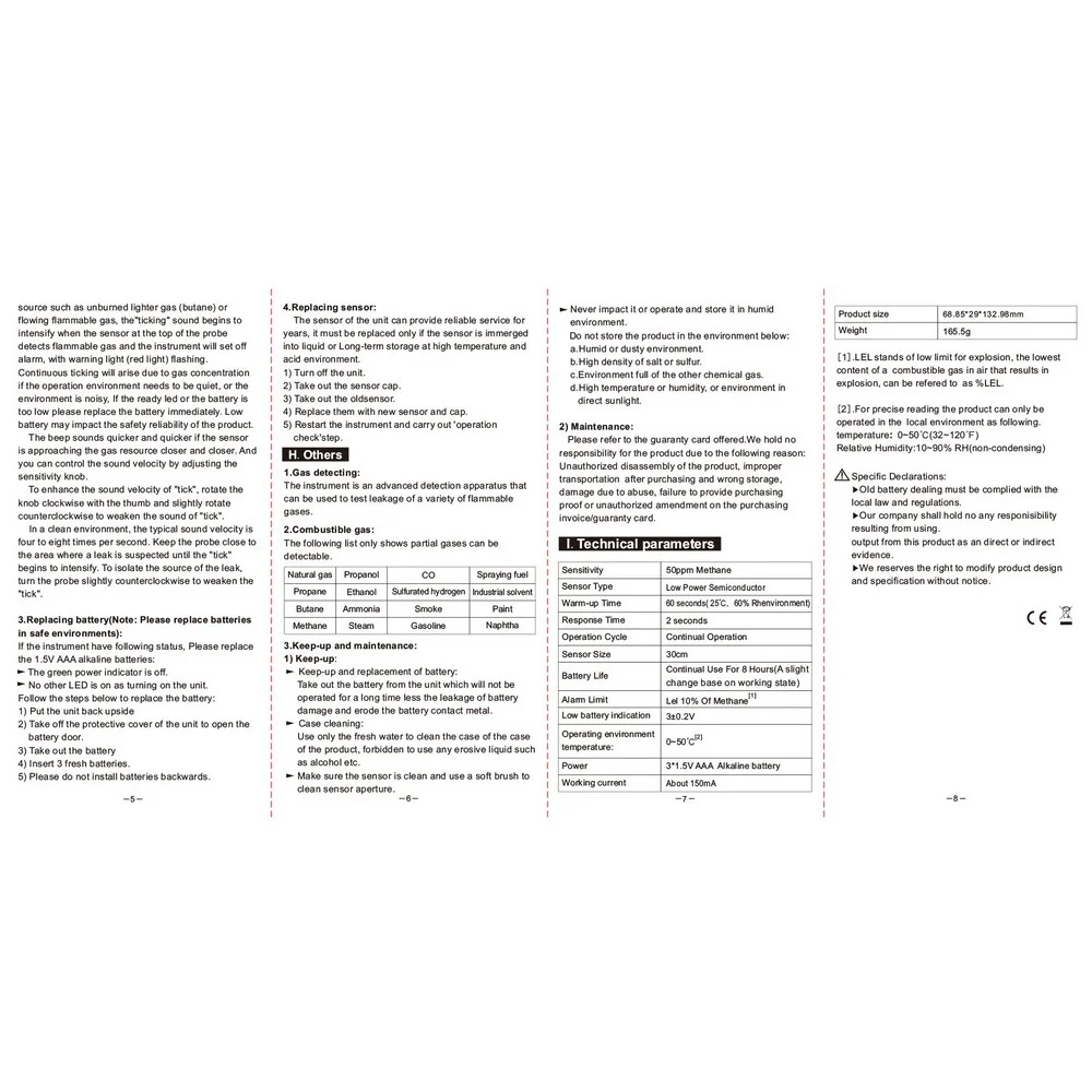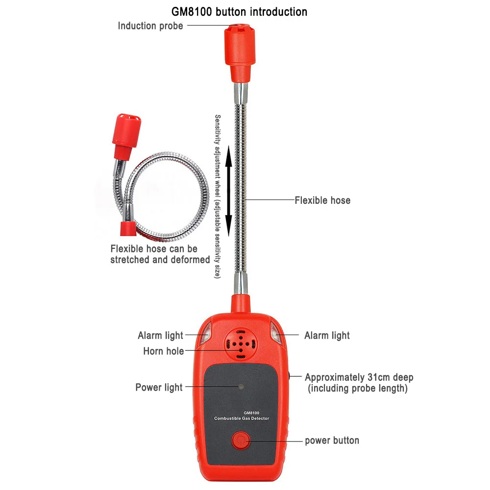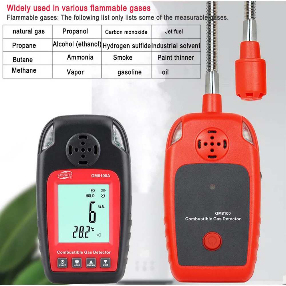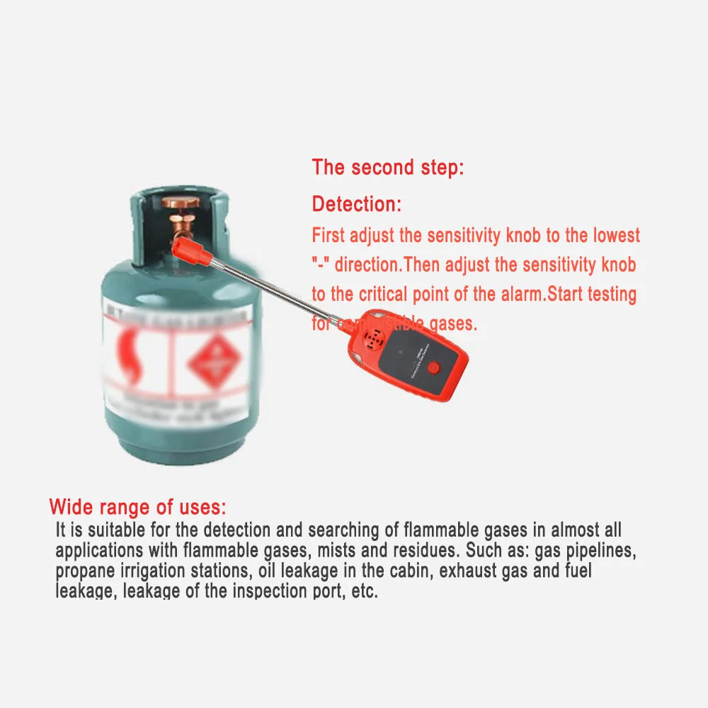 Он подходит для обнаружения и поиска легковоспламеняющихся газов практически во всех применениях с легковоспламеняющимися газами, туманами и остатками. Такие как: газопроводы, пропановые ирригационные станции, утечка масла в кабине, выхлопные газы и утечка топлива, утечка инспекционного порта и т. Д.