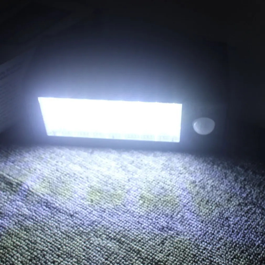 Features: An ideal security measure to add to any home. Perfect for outdoor, such as garden, yard. Solar powered, recharged by solar panels under sunlight. 32 bright white SMD LED bulbs. Activated automatically with motion detection. Fast and easy mounting system. 2pcs rechargeable batteries (included). Water resistant, no worry about rainy days. Ideal for areas where conventional electrical supply is not available. Descriptions: Power source: 1 x solar panel, 2 x rechargeable batteries Solar panel: 5.5V 150mA, 2.2W, polycrystalline silicon, conversion rate 17% Lithium battery: 2 x 3.7V, 2000mAh rechargeable lithium batteries Working time: 6h solar charging for working above 10h at night Charging tine: about 10h fully charged (turn on the switch when charging) Sensor control: Light sensor + PIR motion sensor Induction angle: 120 degrees Induction distance: 3-5M Delay time: the light can be extended for 10 seconds after inducted Light source: 32pcs 0.1W 2835SMD LED Max output: 400LM Waterproof level: IP65 Gear: 4 gears (on the back) Gear A: light controlled, and the lighting is always bright. Gear B: human body induction + low light mode, when people is induced, the light is bright, and then return to low light when people walk away. Gear C: human body induction. High light when people pass by, 10 seconds after people walk away, it will automatically turn off. Specifications: Material: ABS Shell Color: black Light Color: white Item Size: 21*12.5*7.5cm Package included: 1 x Solar Wall Lamp