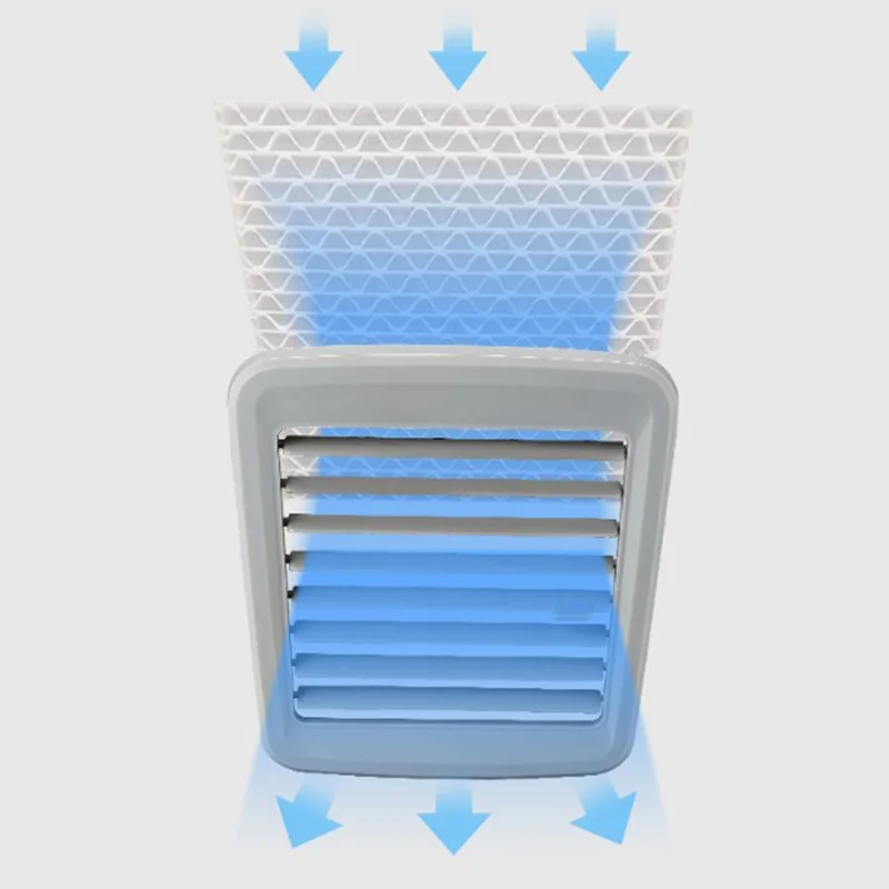 Емкость для воды объемом 300 мл используется для сброса холодного воздуха в вашу комнату. Портативный делает этот воздушный охладитель легким для перемещения дома, в тренажерном зале или в офисе