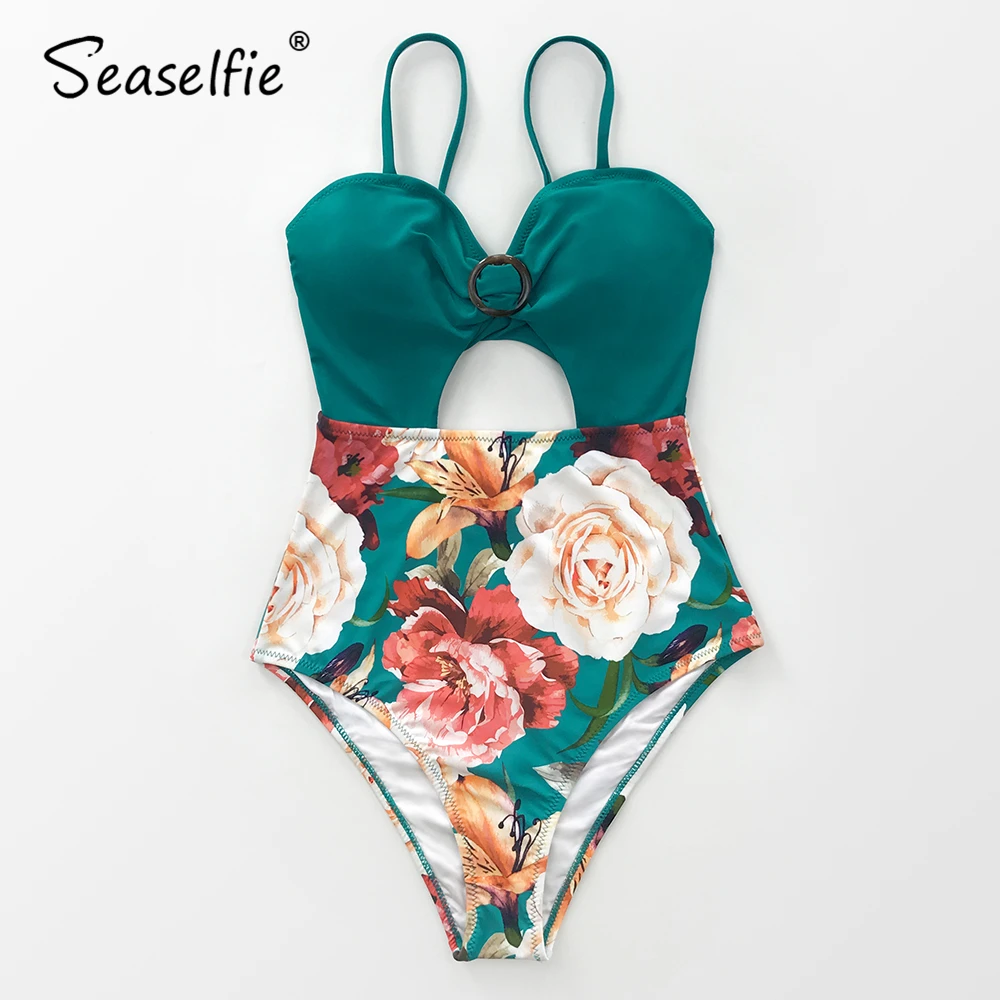 SEASELFIE сексуальный слитный купальник с вырезами женский 2021 бирюзовый и цветочный - купить