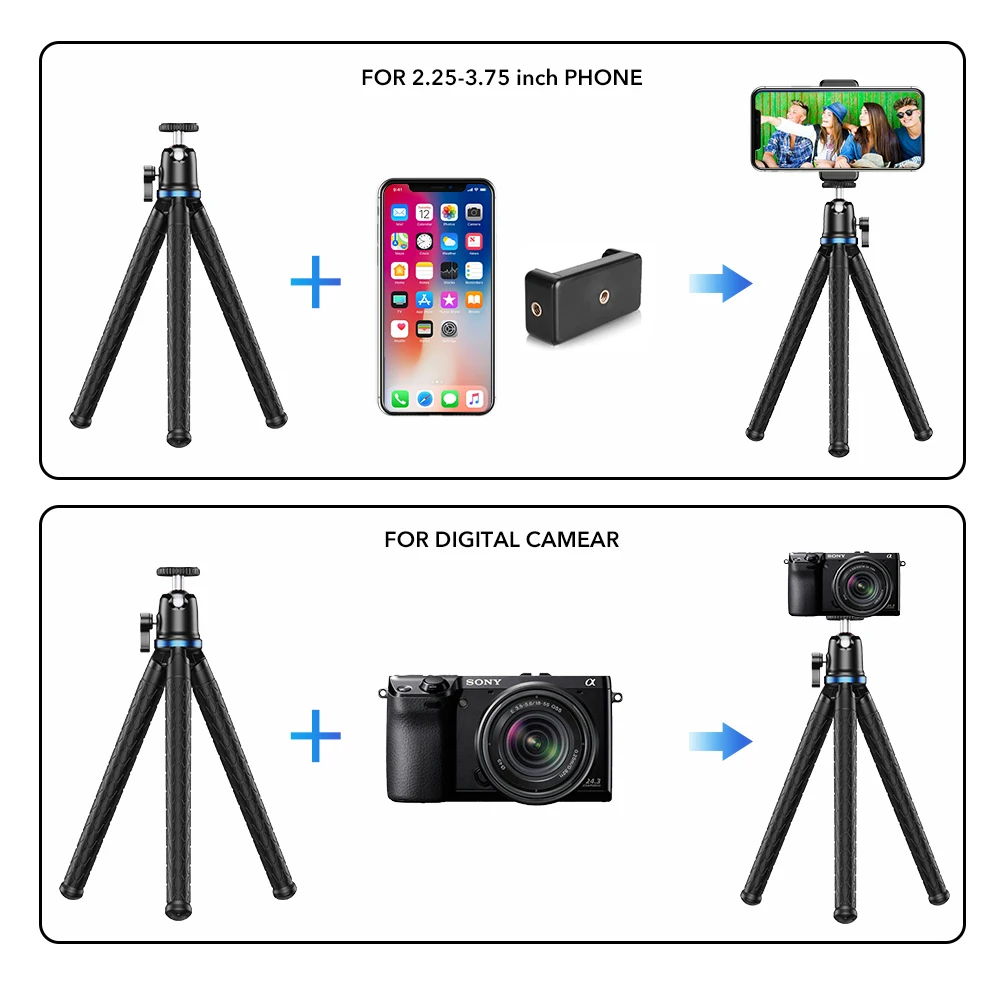 Применение: штатив Octopus 1. Штатив на мобильный телефон. 2. Штатив для камеры 3. Штатив для GoPro 4. Штатив для micro single 5. Штатив для светодиодного заполняющего светильник 6. Штатив для DV 7. Штатив для SLR 8. Штатив для ручного карданного шарнира