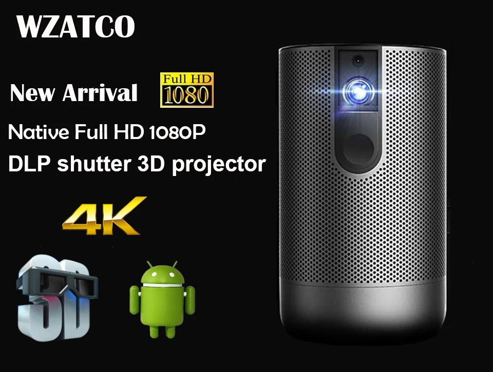 Купить Проектор WZATCO D2 DLP Link 3D проектор Full HD 1920x1080 Android 5G wifi 300 дюйма умный с поддержкой 4K