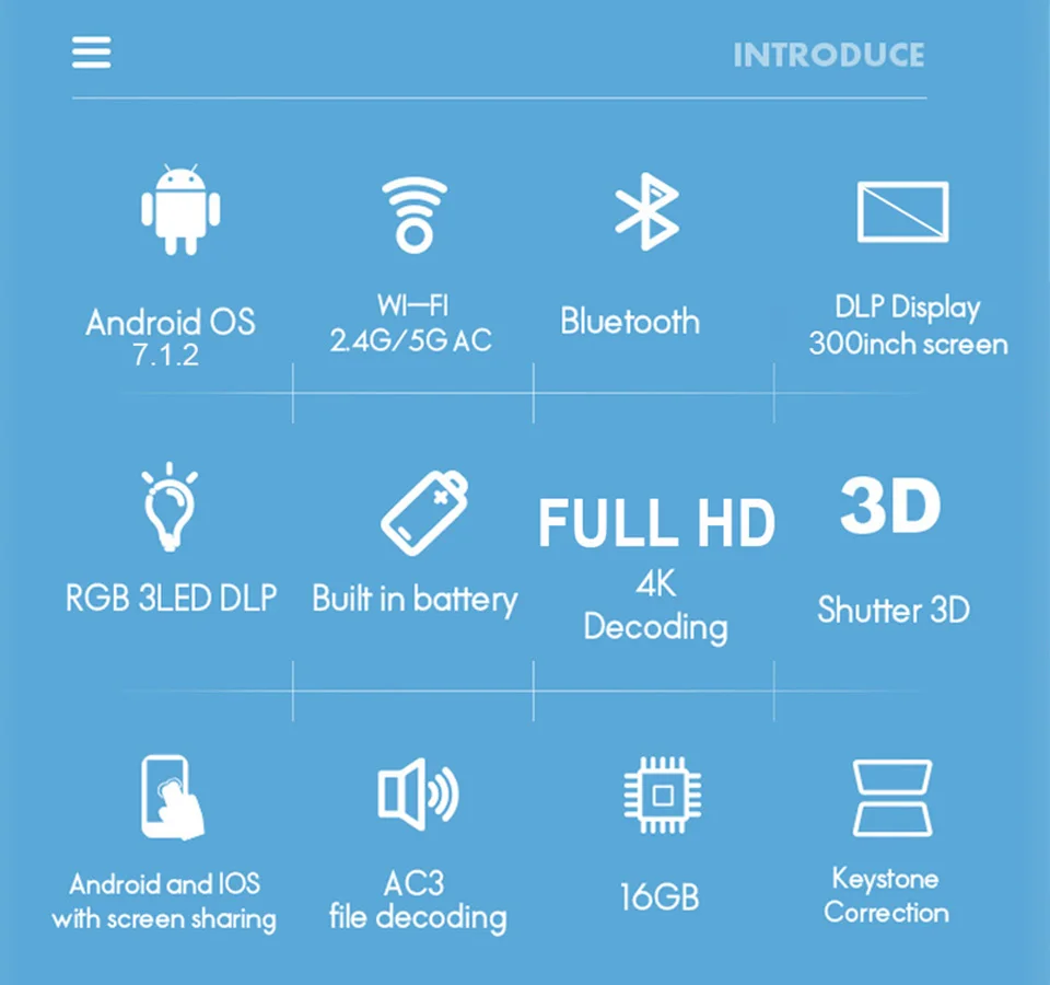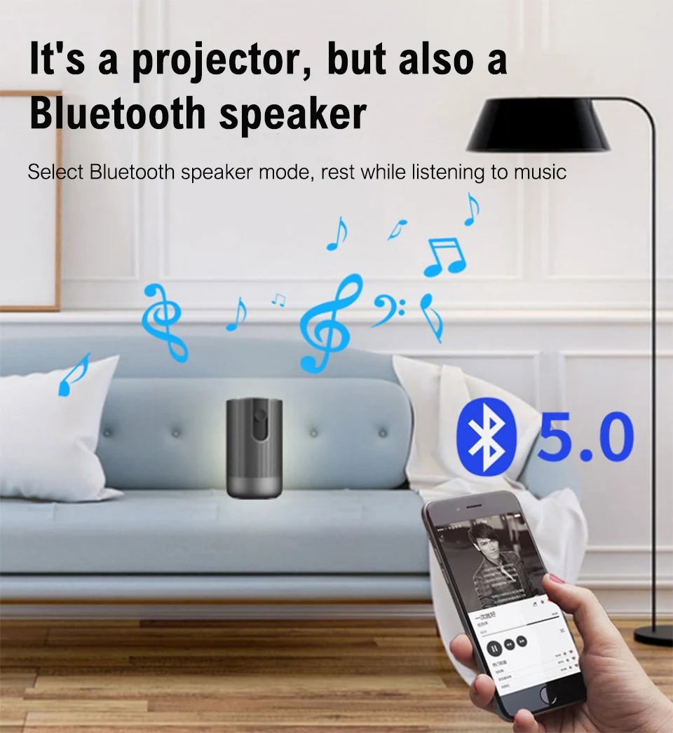 Проектор Встроенный HIFI стерео громкий динамикМожет также работать как bluetooth-динамик