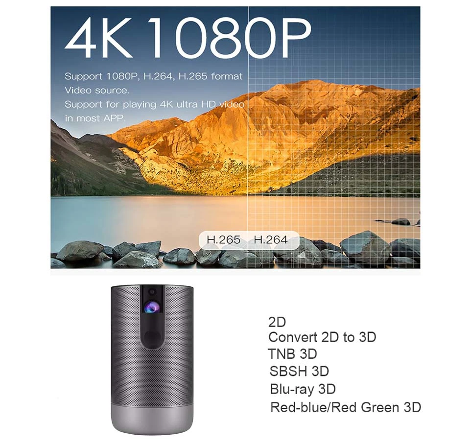 Встроенный WIFI 300 дюймовБатарея Proyector поддержка 4K видео игры Beamer