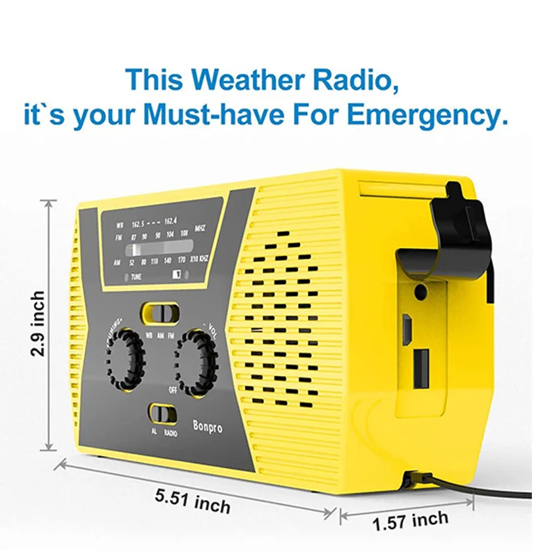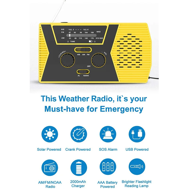 [Аварийное радио готово для всех чрезвычайных ситуаций] Это BY042 аварийное радио погоды является универсальным продуктом, который будет транслировать последнюю информацию о погоде и опасности для вашего региона во времени, например, землетрясения, урагана, tornado, blizzard или любое другое природное бедствие.