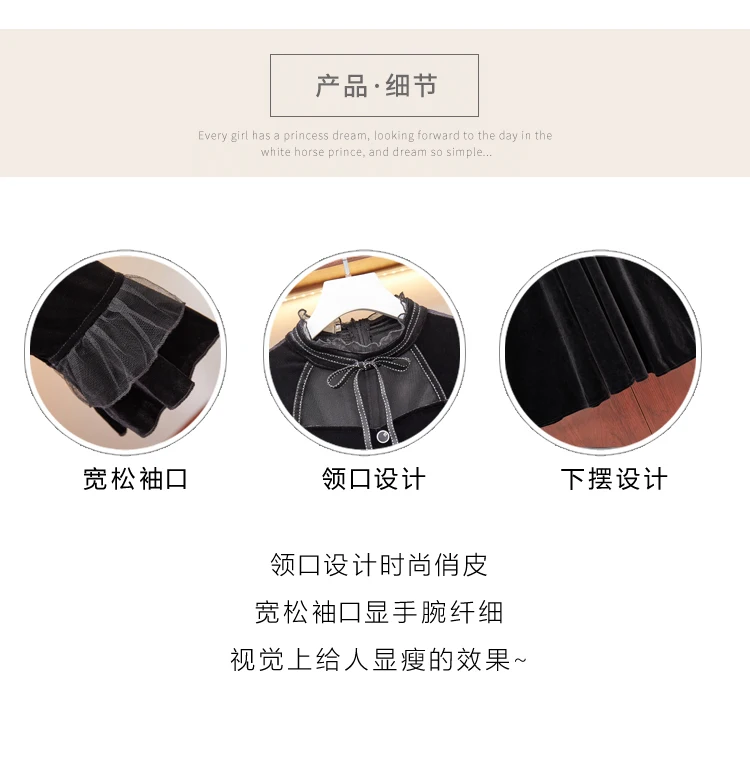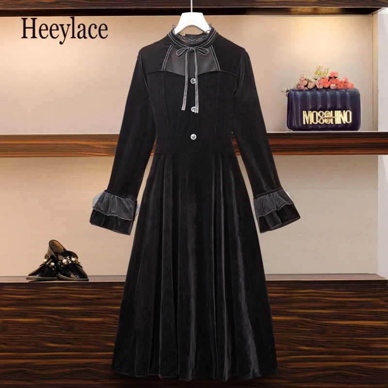 Женское винтажное бархатное длинное платье Осень-зима 2020 Сетчатое лоскутное - купить