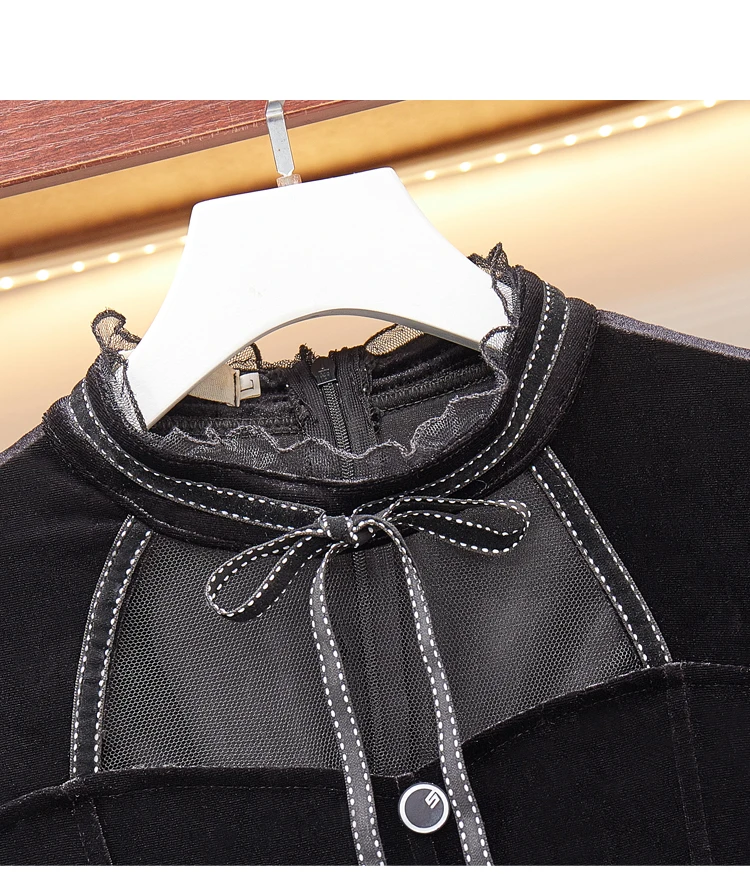 Отзывы о Женское винтажное бархатное длинное платье Осень-зима 2020 Сетчатое лоскутное