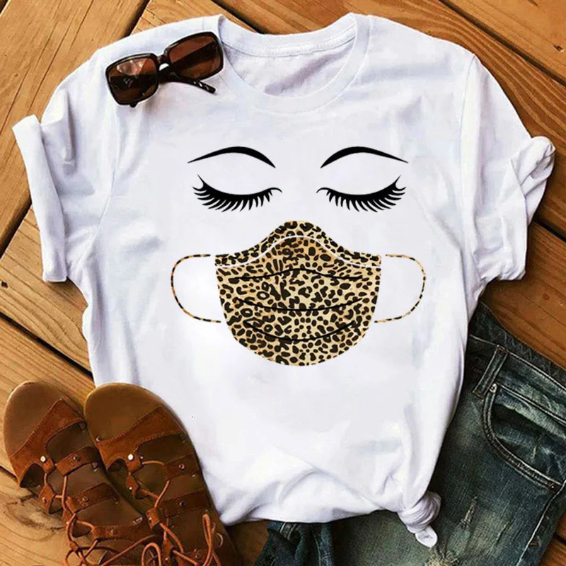 Футболка женская с коротким рукавом модный принтом ресниц топ леопардовой - купить