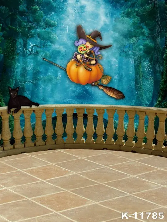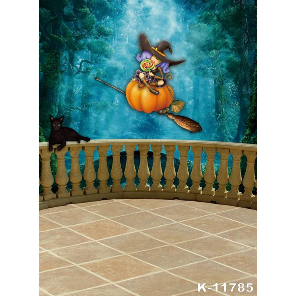 7X5FT фоны для фотосъемки Хэллоуин вечерние Фотофон лес Черный кот Ведьма езда - купить