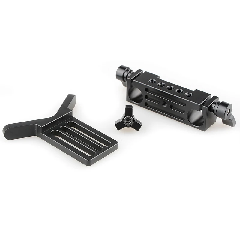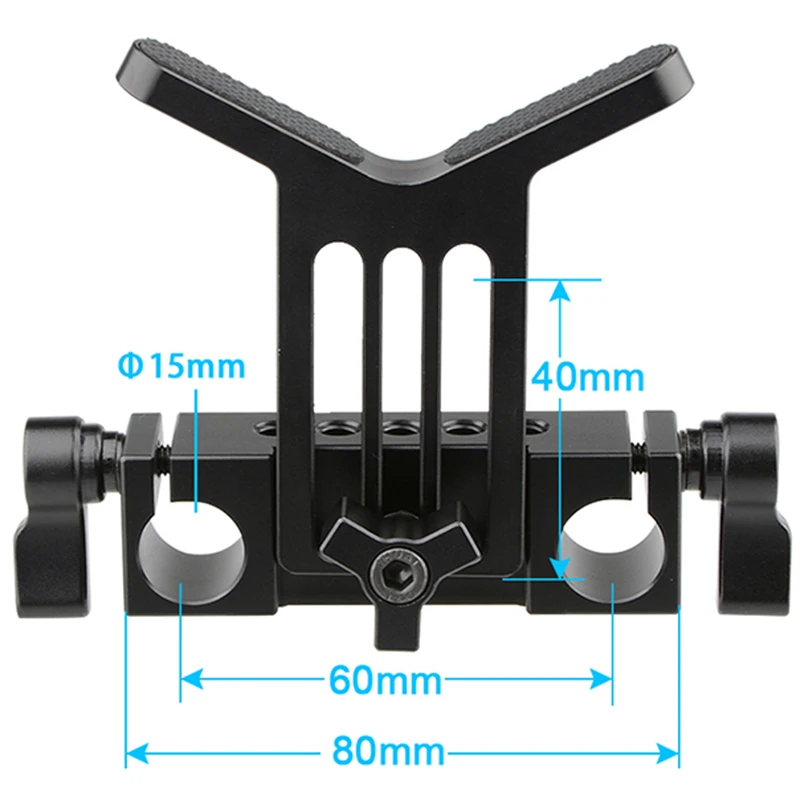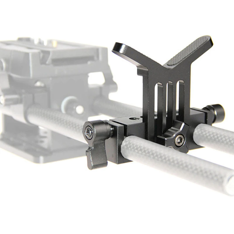 Опорный кронштейн для объектива изготовлен из алюминиевого сплава и в форме «Y» с резиновыми прокладками сверху для устранения вибрации объектива. Он регулируется по высоте (макс. 60 мм) и подходит для диаметра объектива от 50 мм до 140 мм. Стандартные отверстия 15 мм диаметром 60 мм совместимы с любыми 15 мм рельсовыми установками.