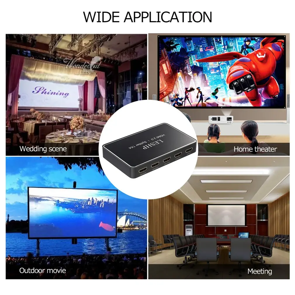 Это высокопроизводительный сплиттер с одним входом HDMI и четырьмя выходами HDMI. Он может распределить 1 Ультра HD Источник на 4 Ультра HD дисплеев с USB изменением для вашего устройства, таких как телефон и банк питания. Система поддерживает все форматы 3D TV в дополнение ко всем форматам HD TV до 4K x 2k/60hz с 12-битным 4:2:0 YCBR