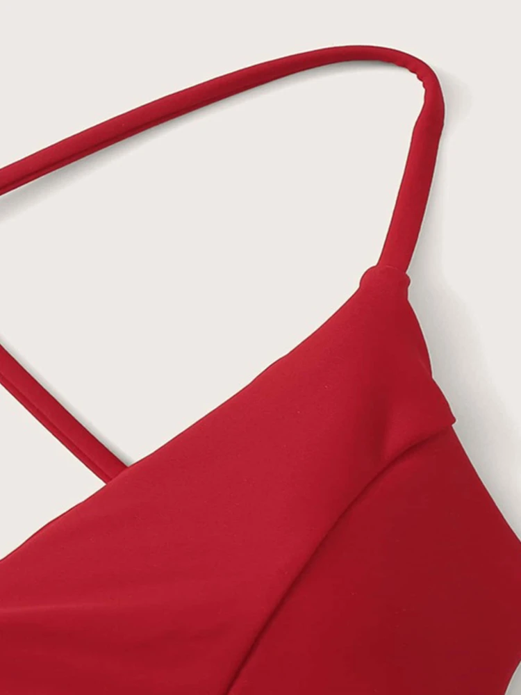 Отзывы о Топ бикини женский купальник новинка 2025 красные на бретельках в рубчик лиф летнее пляжная одежда купальный костюм для женщин