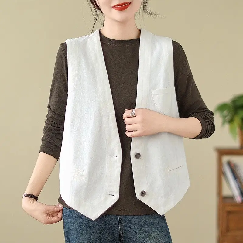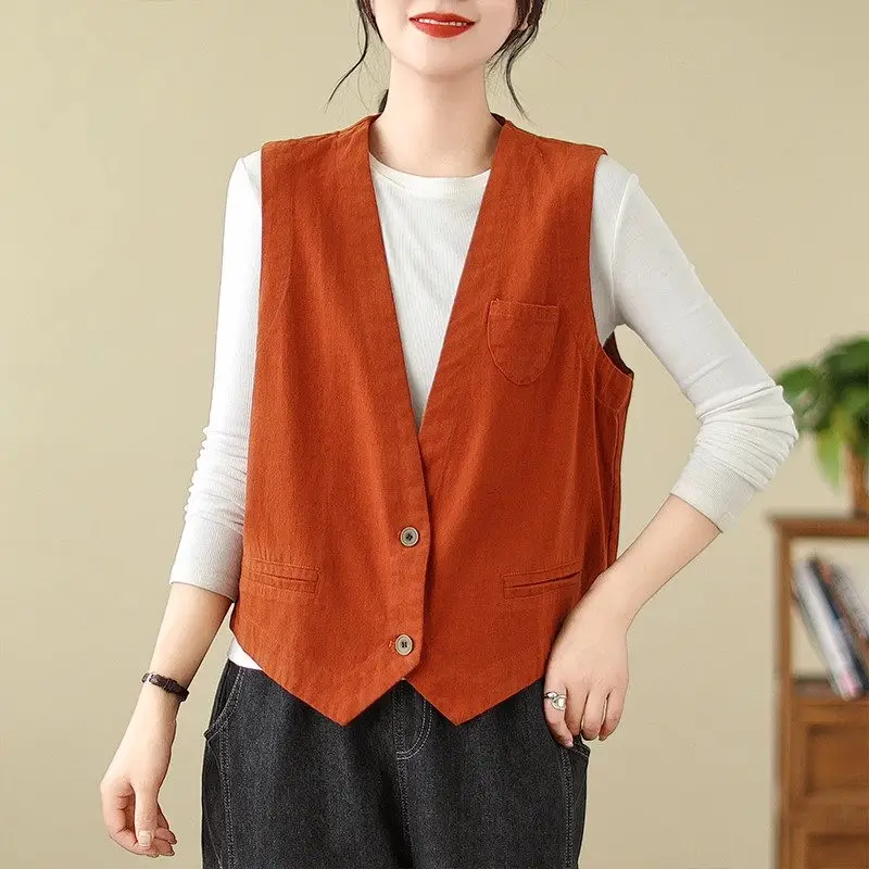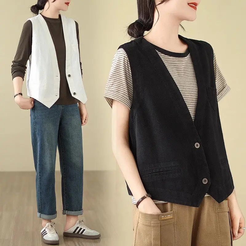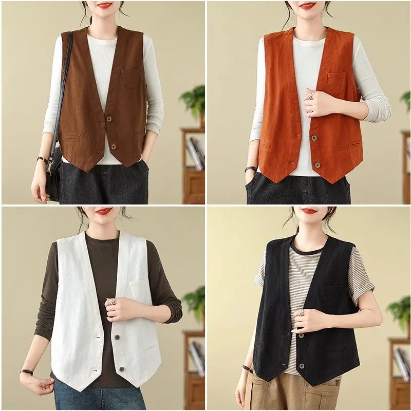 Отзывы о Повседневный короткий жилет в стиле ретро для женщин на весну и осень свободный маленький без рукавов куртка с v-образным вырезом простой модный топ A811