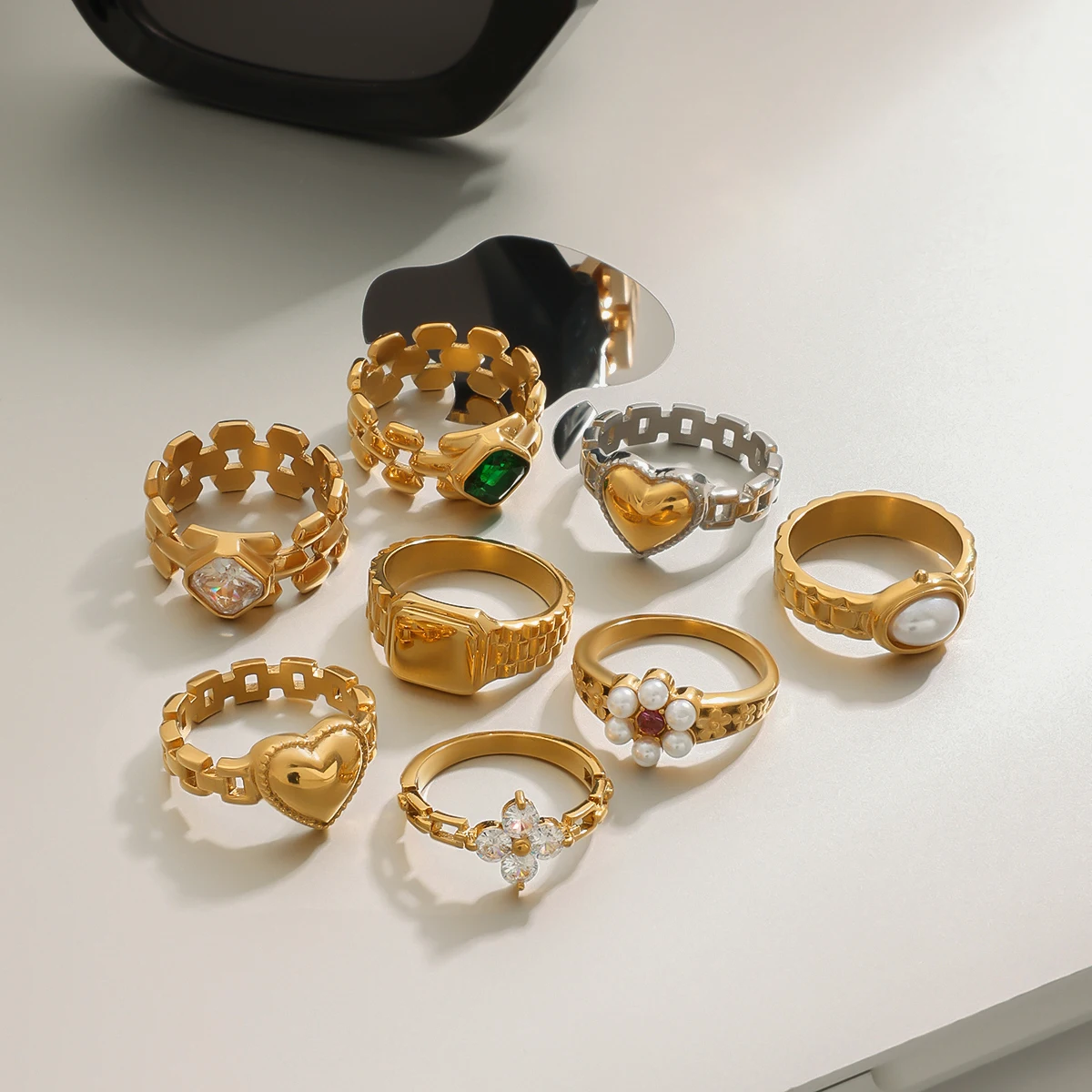 Отзывы о Youthway Минималистичный Роскошный 18-каратный позолоченный комплект колец из нержавеющей стали с геометрическим овальным цирконием и жемчугом в форме часов женские ювелирные изделия на каждый день