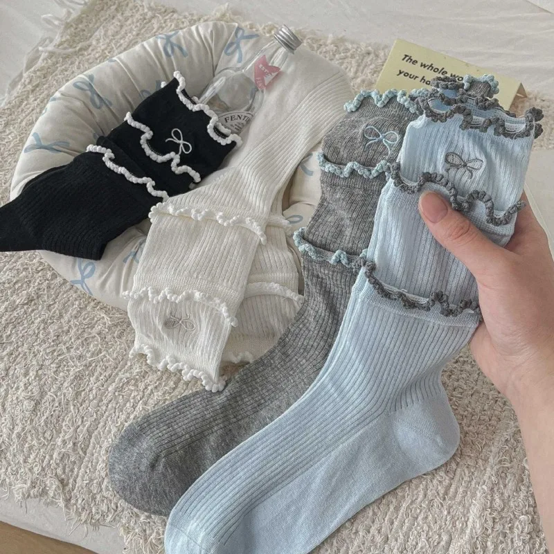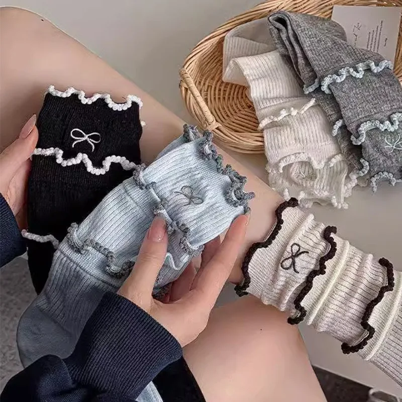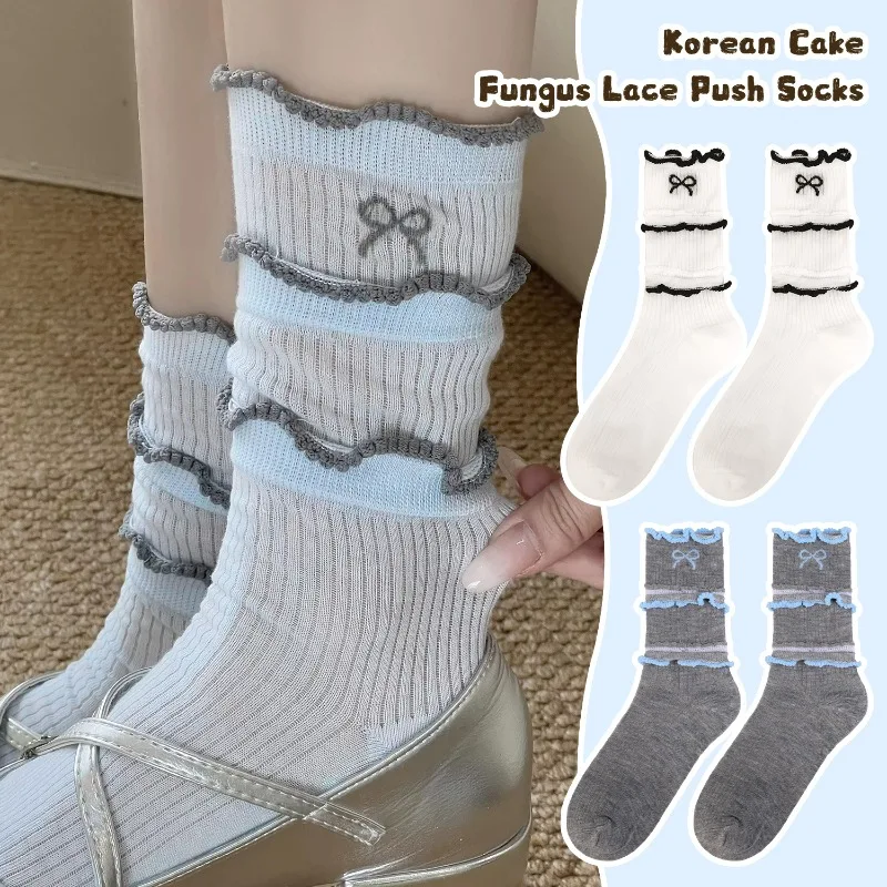 Отзывы о 2025 Новые корейские носки с кружевным ворсом и цветочным принтом милые стильные повседневные летние хлопковые тонким бантом салатами круглым вырезом