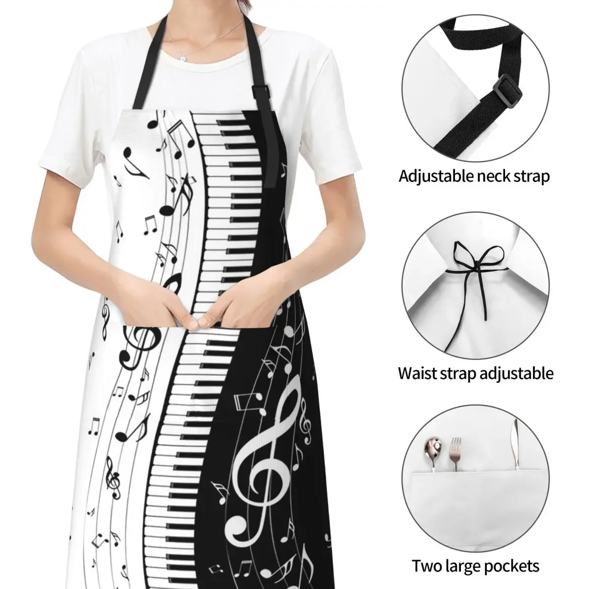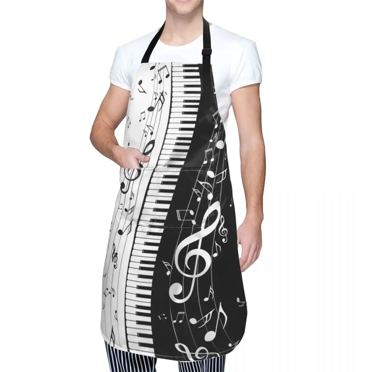 Отзывы о Абстрактные клавиши фортепиано с музыкальными нотами фартуки для шеф-повара приготовления пищи выпечки нагрудник кухонный сарафан чистки женщин и мужчин живопись