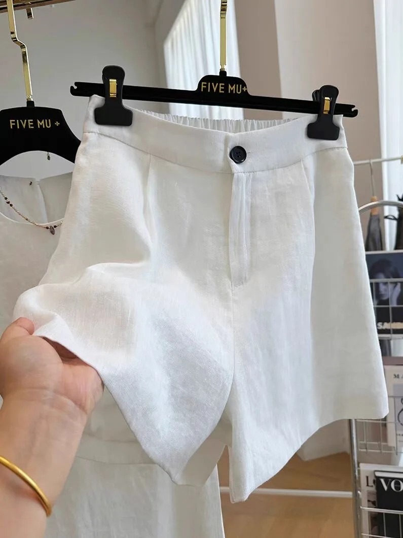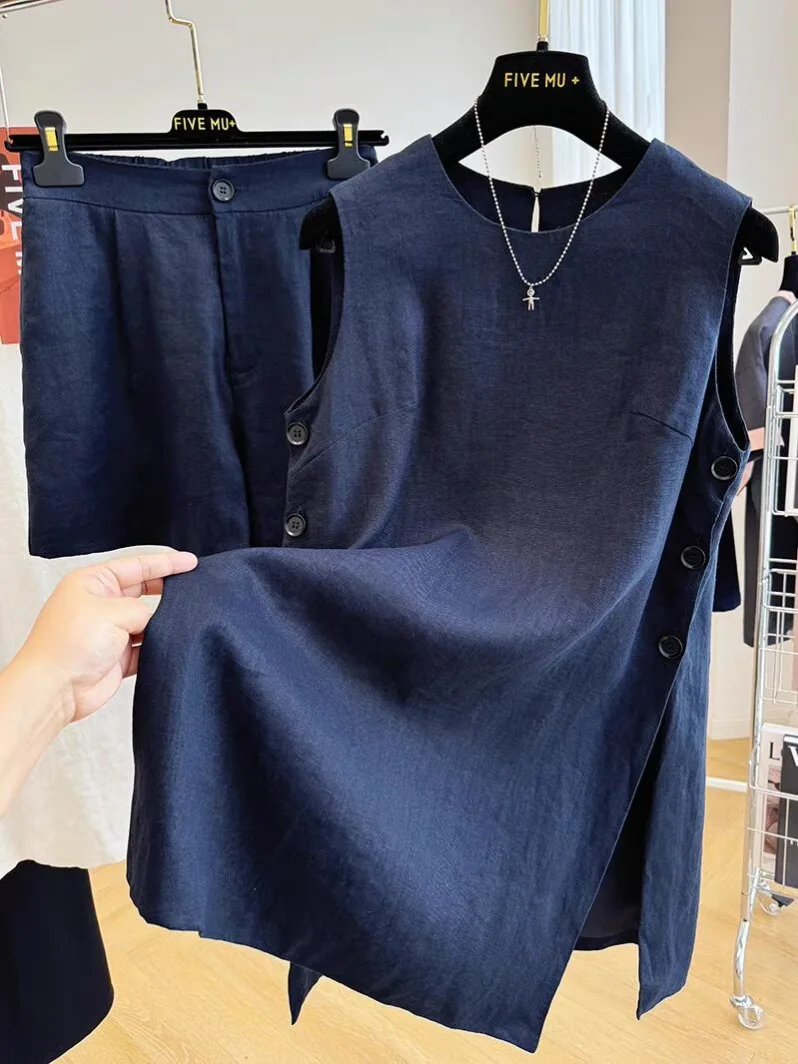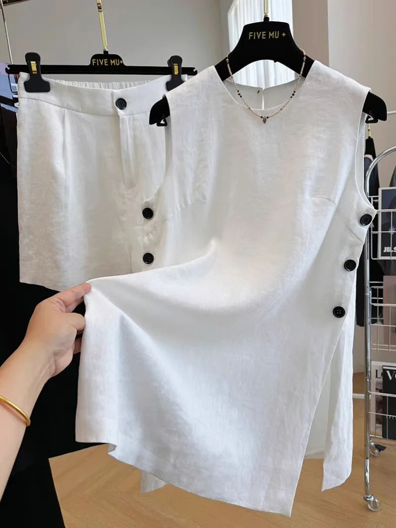 Отзывы о Летние повседневные короткие комплекты для женщин 2 шт. однотонные хлопковые и льняные свободные майки без рукавов шорты модные одинаковые костюмы N701