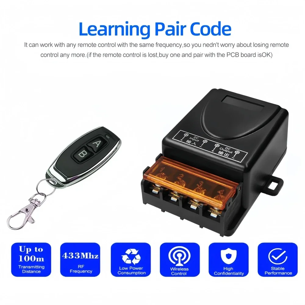 Отзывы о 433 МГц Беспроводной пульт дистанционного управления 30A DC 12 В 24 36 85 Высокомощный радиочастотный релейный приемник для насосов Световая лампа Светодиодный диапазон 100 м