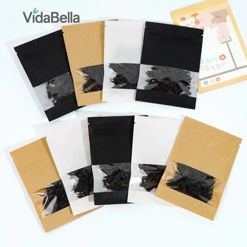 Отзывы о 100 шт. крафт-бумага упаковка для пищевых продуктов сумка на молнии черный белый цвет маленький с окном хранения конфет печенья чая толстые пакеты