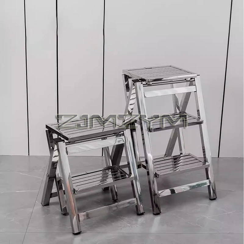 Отзывы о Табурет-лестница из нержавеющей стали складная телескопическая утолщенная стремянка домашняя многофункциональная портативная 2-ступенчатая скамейка-лестница