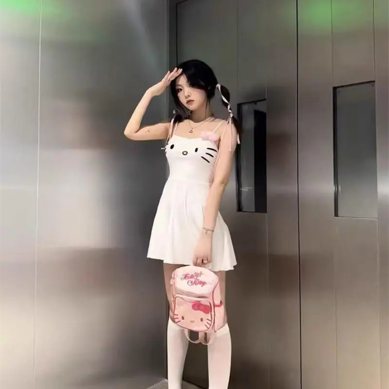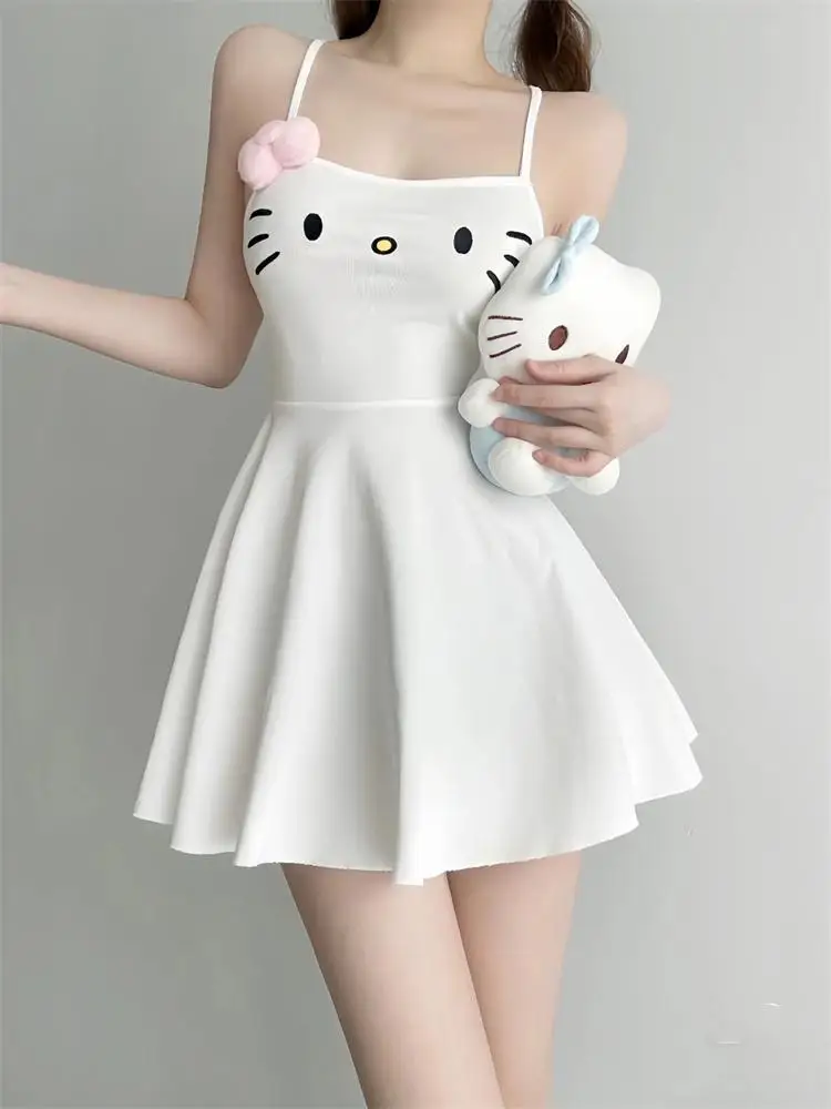 Отзывы о Sanrio Hello Kitty милое платье с героями мультфильмов креативная кавайная летняя легкая белая юбка на бретелях для девочек пляжная подарок оптовая продажа