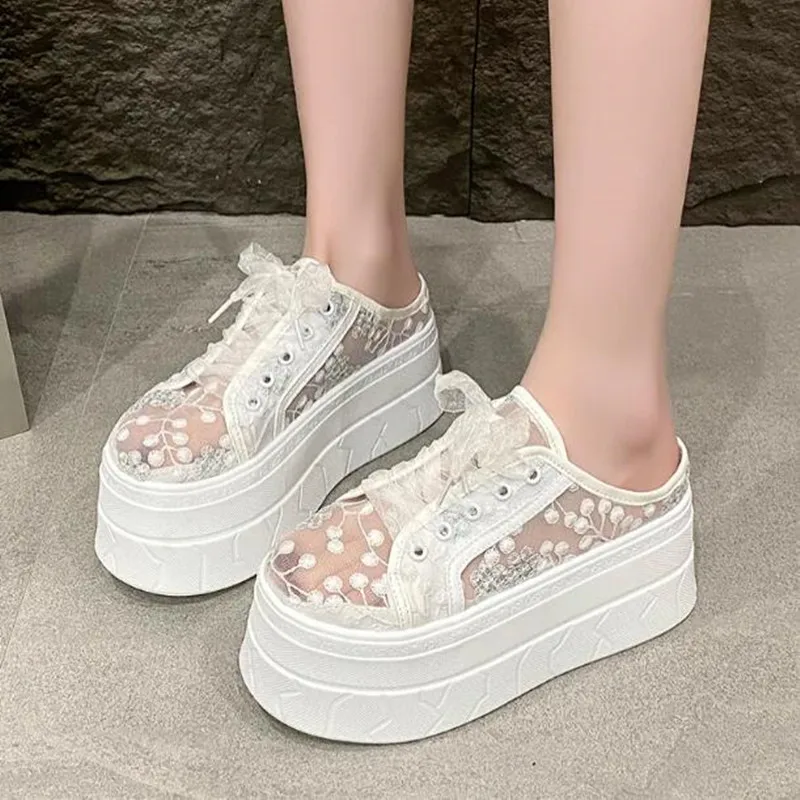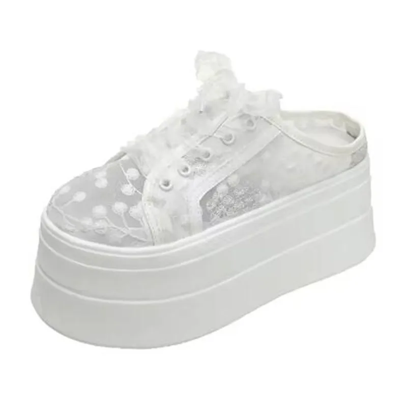Отзывы о Новые женские тапочки 7 5 см блестящие летние на платформе кружевные закрытые с бриллиантами и высоким носком туфли-мулы