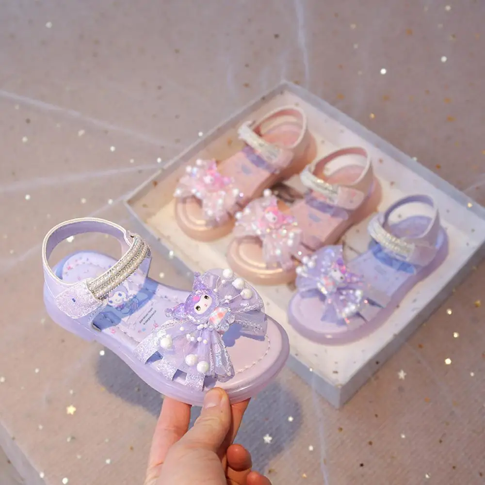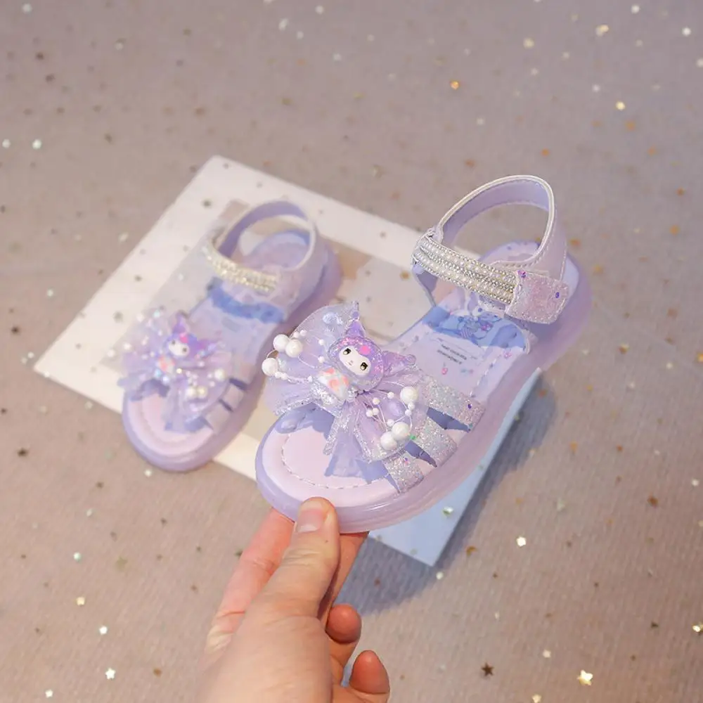 Отзывы о Sanrio Kuromi/Новые сандалии для девочек летние детские туфли принцессы со стразами и кристаллами пляжная обувь отдыха с мягкой подошвой уличные
