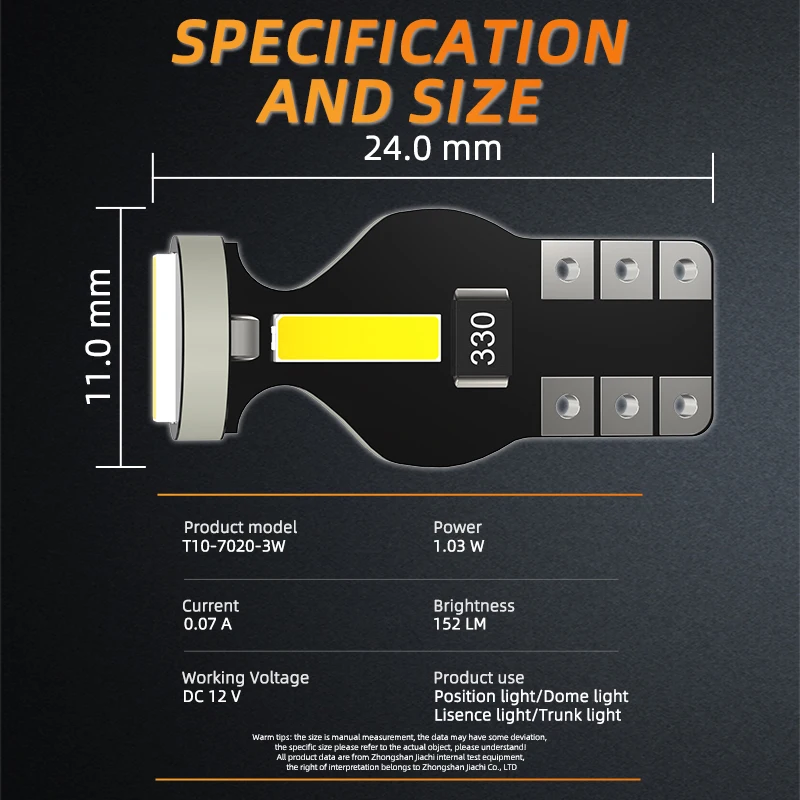 Отзывы о jiachi 100 шт. T10 W5W Светодиодная лампа Canbus 7020 3SMD без ошибок Супер яркая внутренняя купольная Зазор номерного знака Белый 12 В