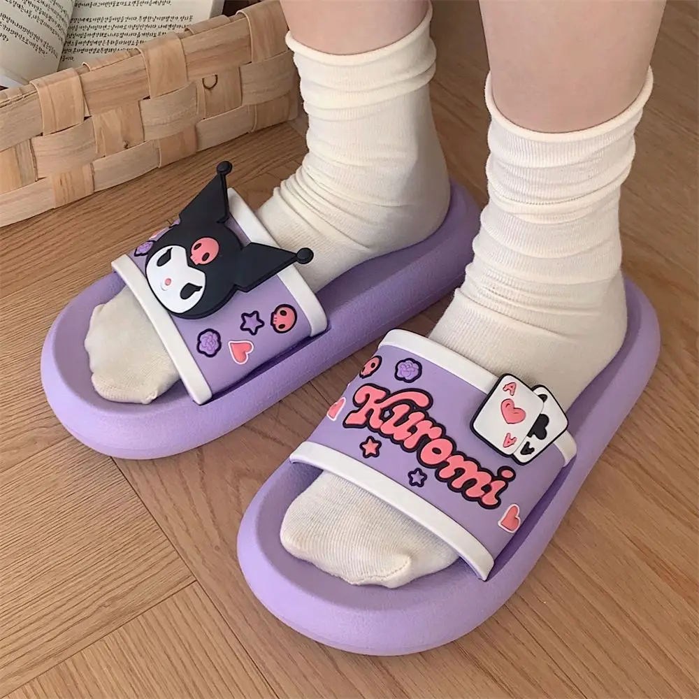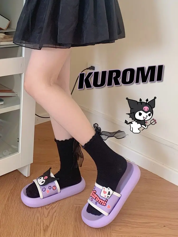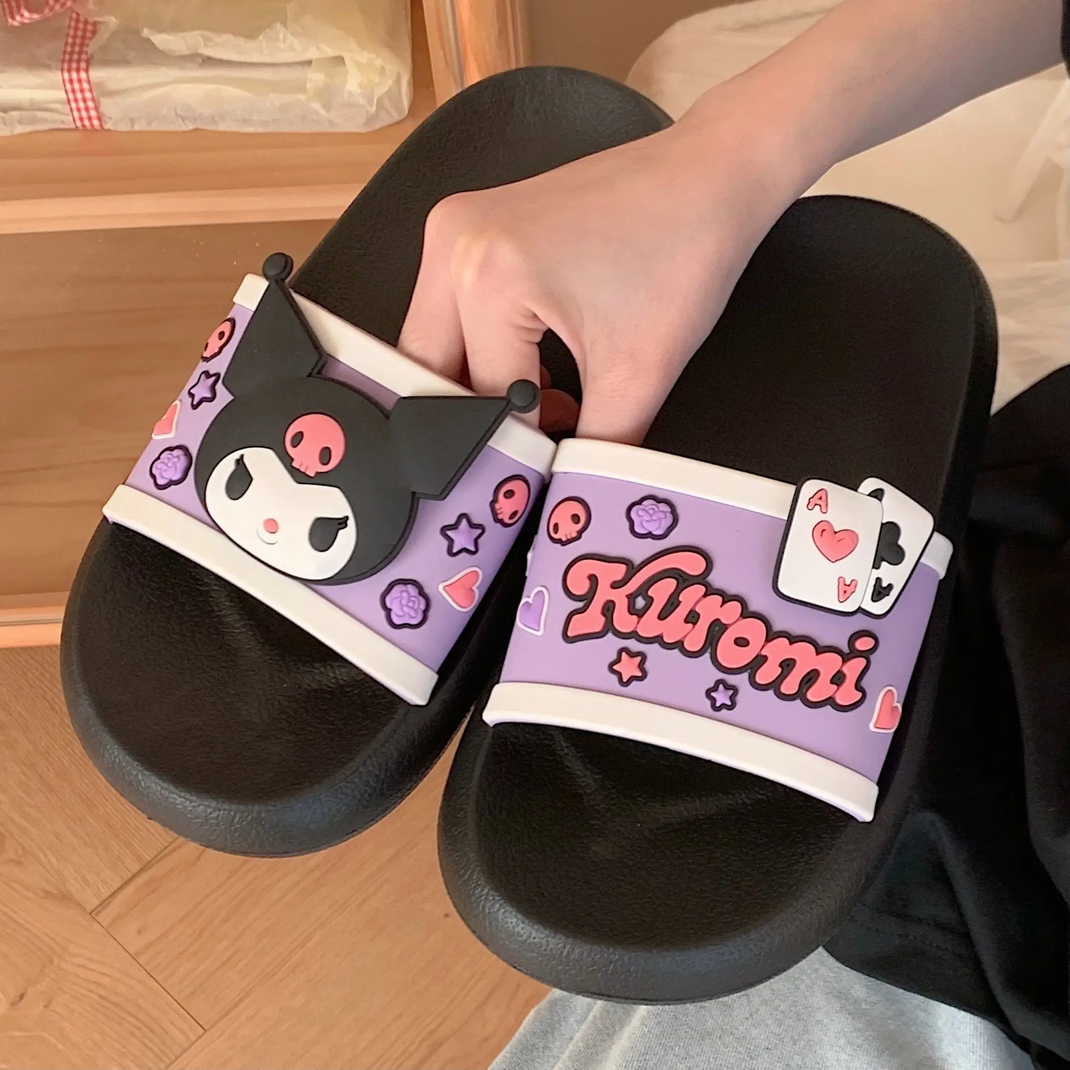 Отзывы о Sanrio Kuromi милые тапочки с героями мультфильмов креативные кавайные летние легкие противоскользящие пляжные туфли для мальчиков и девочек подарок оптовая продажа