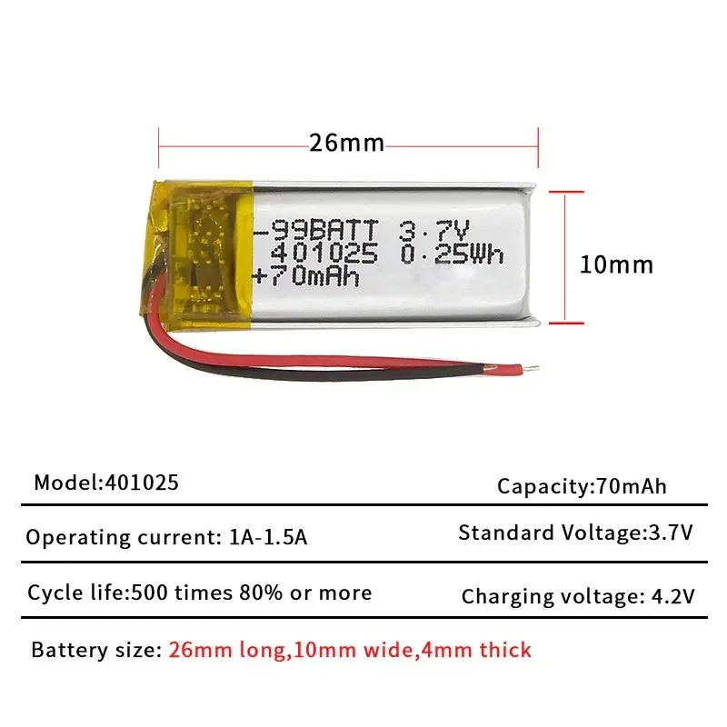 Отзывы о 10 шт. 401025 401225 Батарея 70 мАч Lipo 3 7 В литиевые батареи для умной Bluetooth-гарнитуры Ручка записи Маленький вентилятор Индукционная ручка