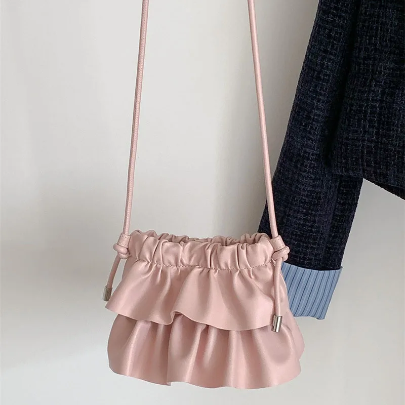 Отзывы о Женская сумка новая простая и модная сумка-мешок женская плиссированная через плечо с краем лотоса