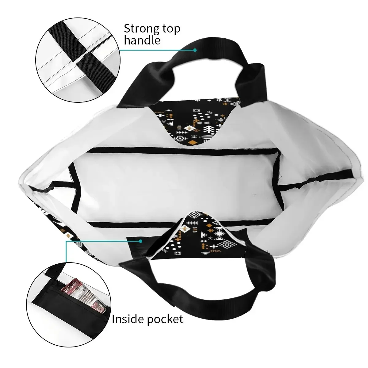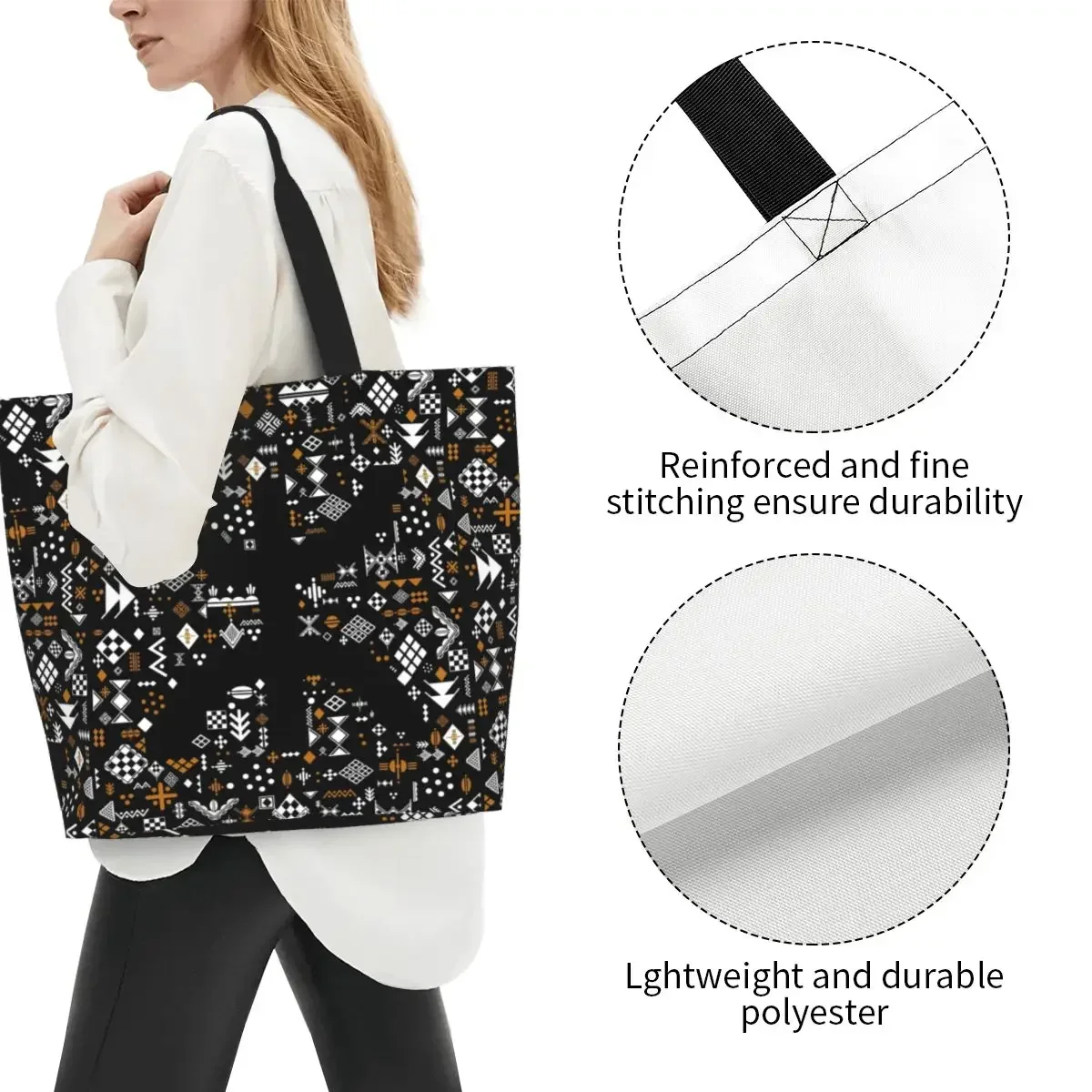Отзывы о Kabyle Pottery Amazigh Ornament Бакалея Сумка для покупок Холст с этническим геометрическим рисунком Сумки-шопперы на плечо Сумки большой вместимости