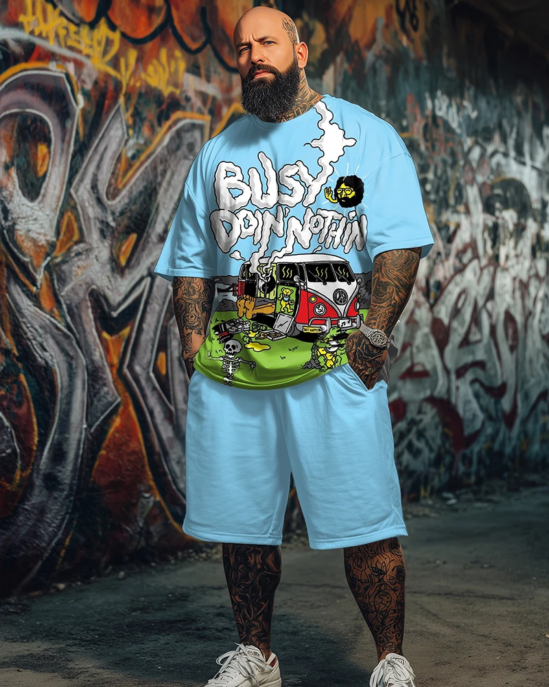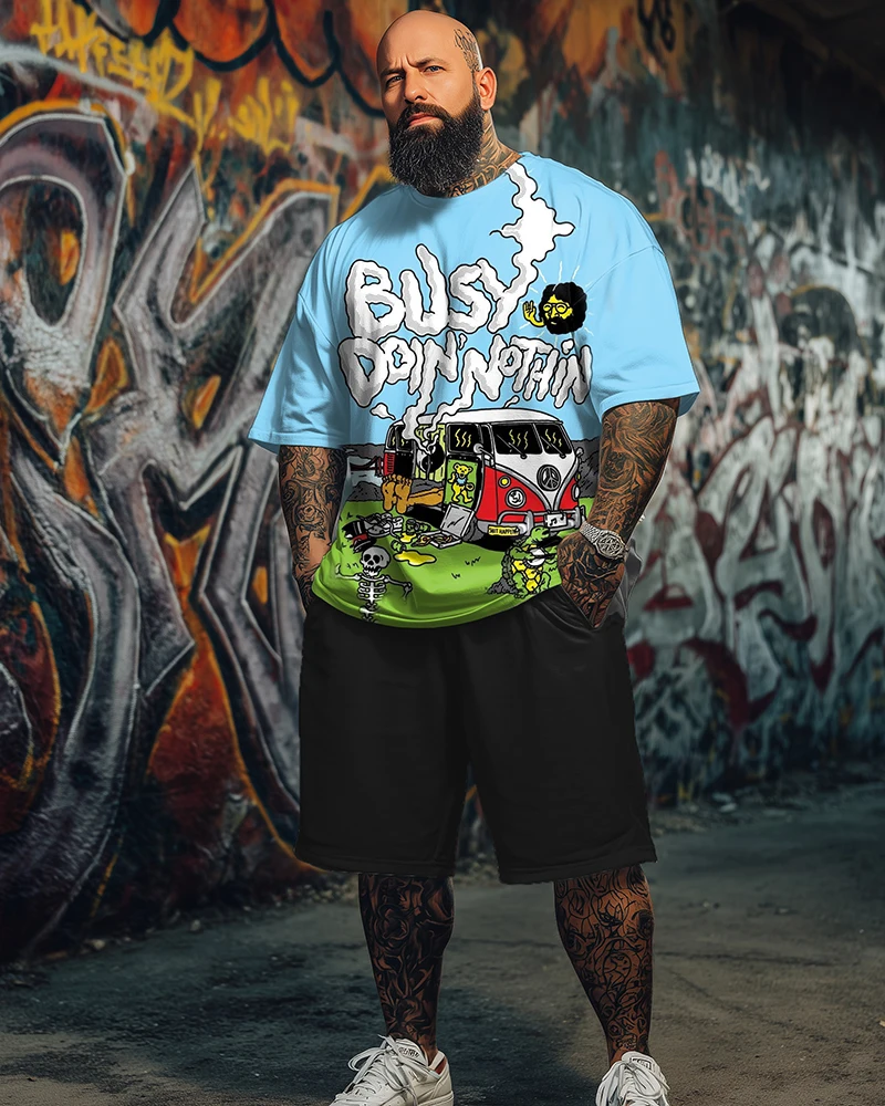 Отзывы о S-9XL Мужская футболка большого размера с короткими рукавами и принтом в стиле хиппи рок-музыки шорты комплект из двух предметов