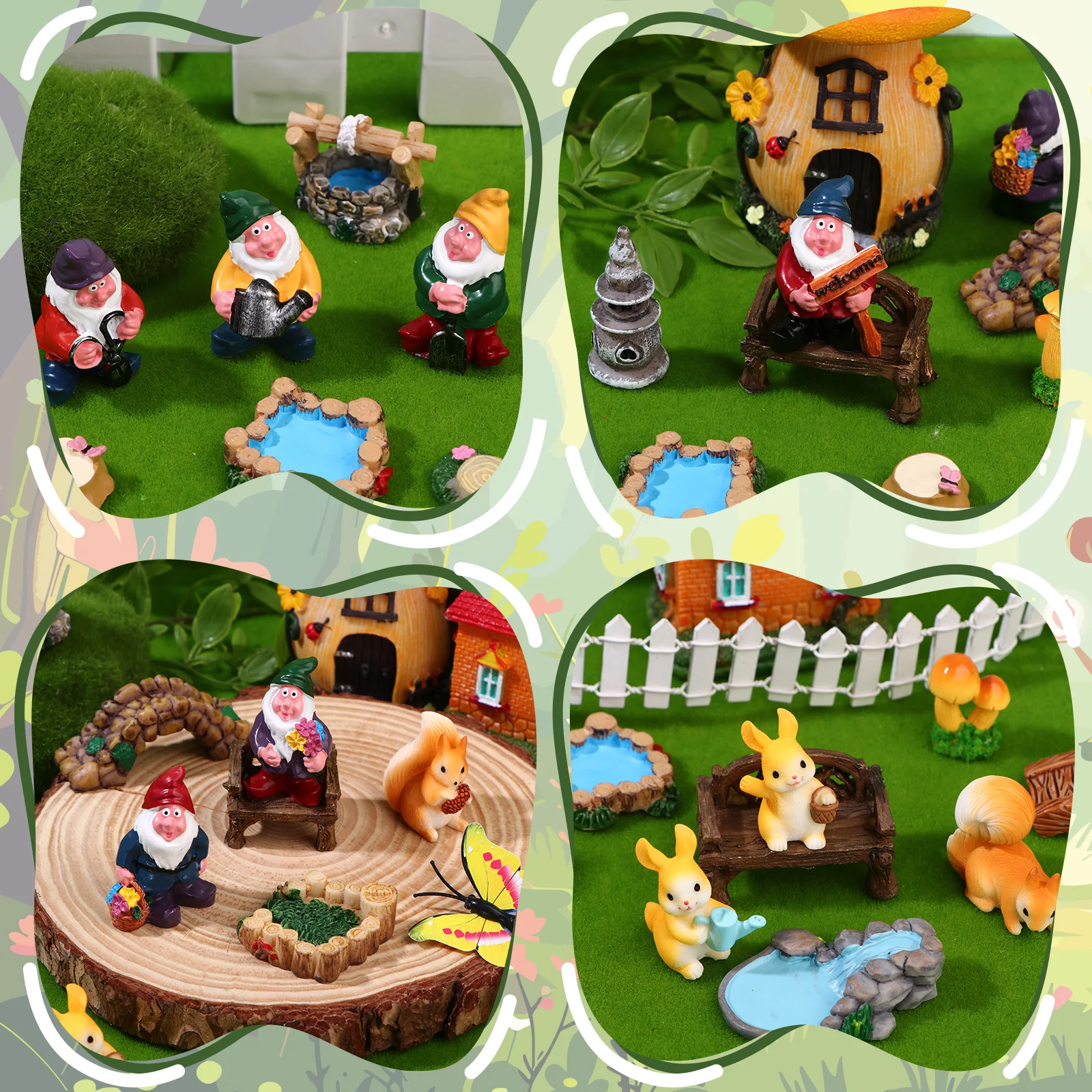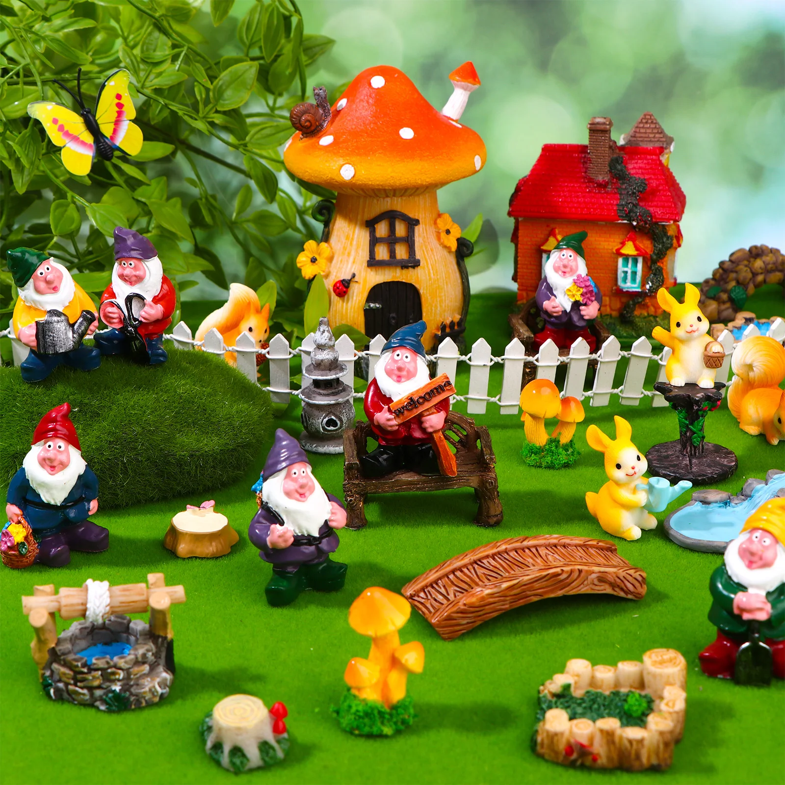 Отзывы о 22 шт. фигурки сказочного гнома из смолы мини-гном садовые аксессуары фигурка гриба поддельный пруд газонный мост для дома и улицы