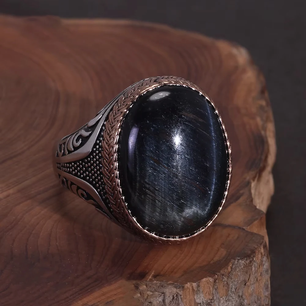 Отзывы о Кольцо-печатка из стерлингового серебра 925 пробы с синим тигровым глазом натуральный драгоценный камень турецкое кольцо ястреба для мужчин мужские украшения в стиле ретро панк