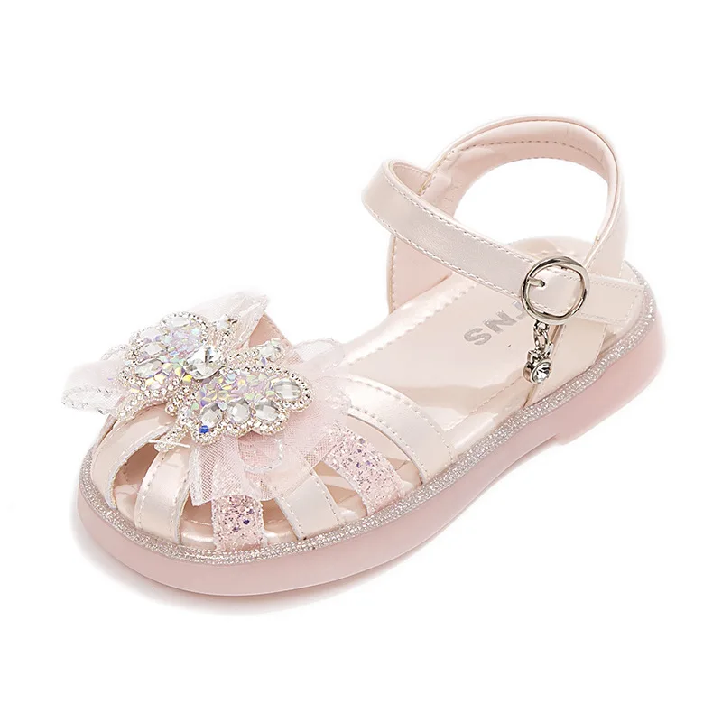 Отзывы о Новая пляжная обувь для девочек модные детские сандалии с бантом и стразами летние на мягком плоском каблуке принцессы 10 лет