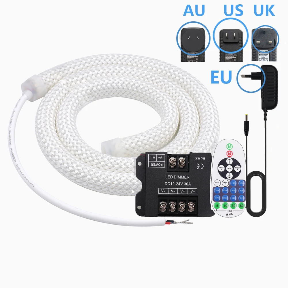 Отзывы о 12 В 24 360 ° Неоновая светодиодная лента с круглой сеткой и регулируемой яркостью 240 светодиодов/м вилка питания ЕС США Великобритании Австралии 23 клавиши пульт дистанционного управления гибкий домашний декор