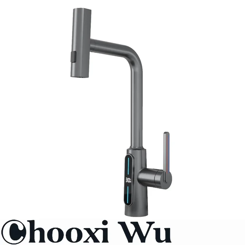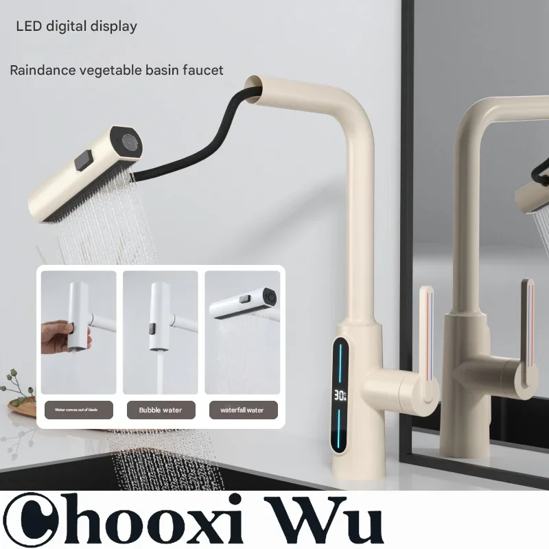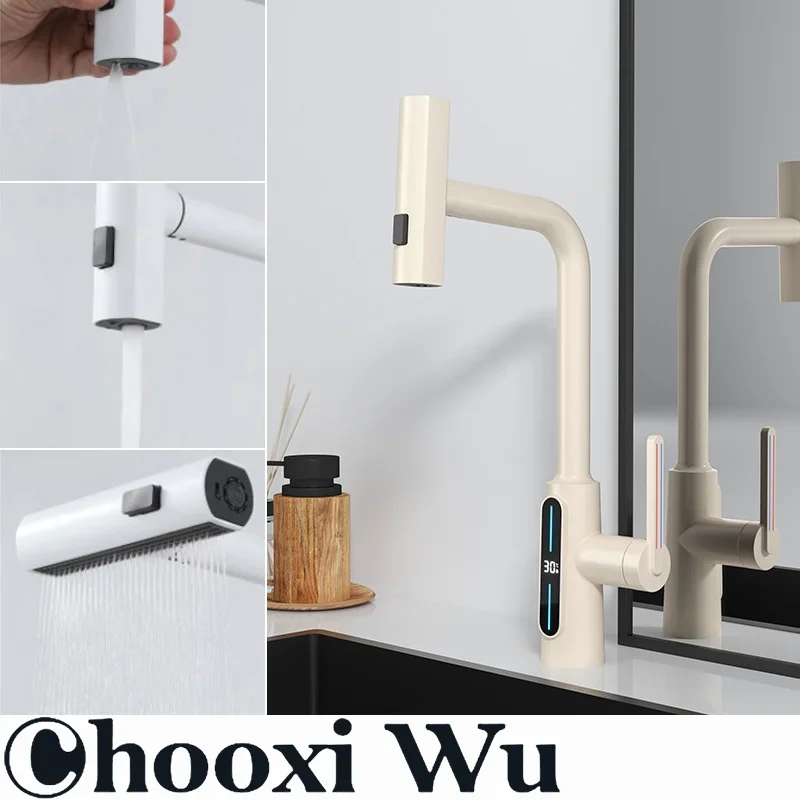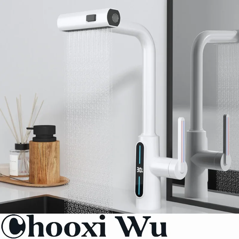 Отзывы о Смеситель из нержавеющей стали кухонный интеллектуальный смеситель с цифровым дисплеем выдвижной для умывальника горячим и холодным дождем водопадом
