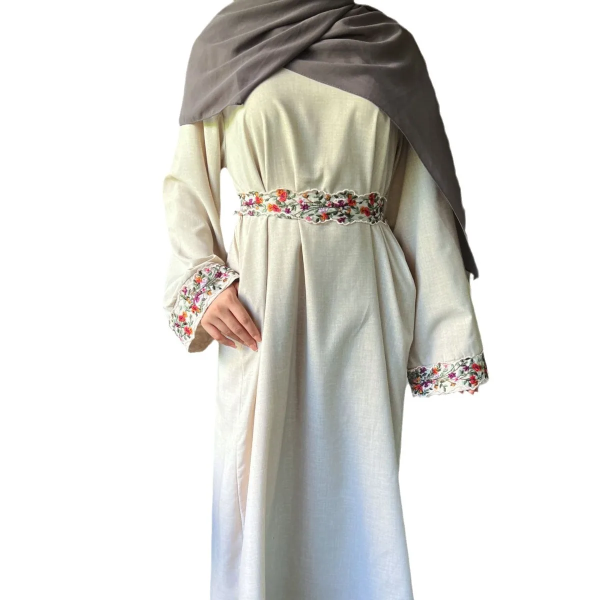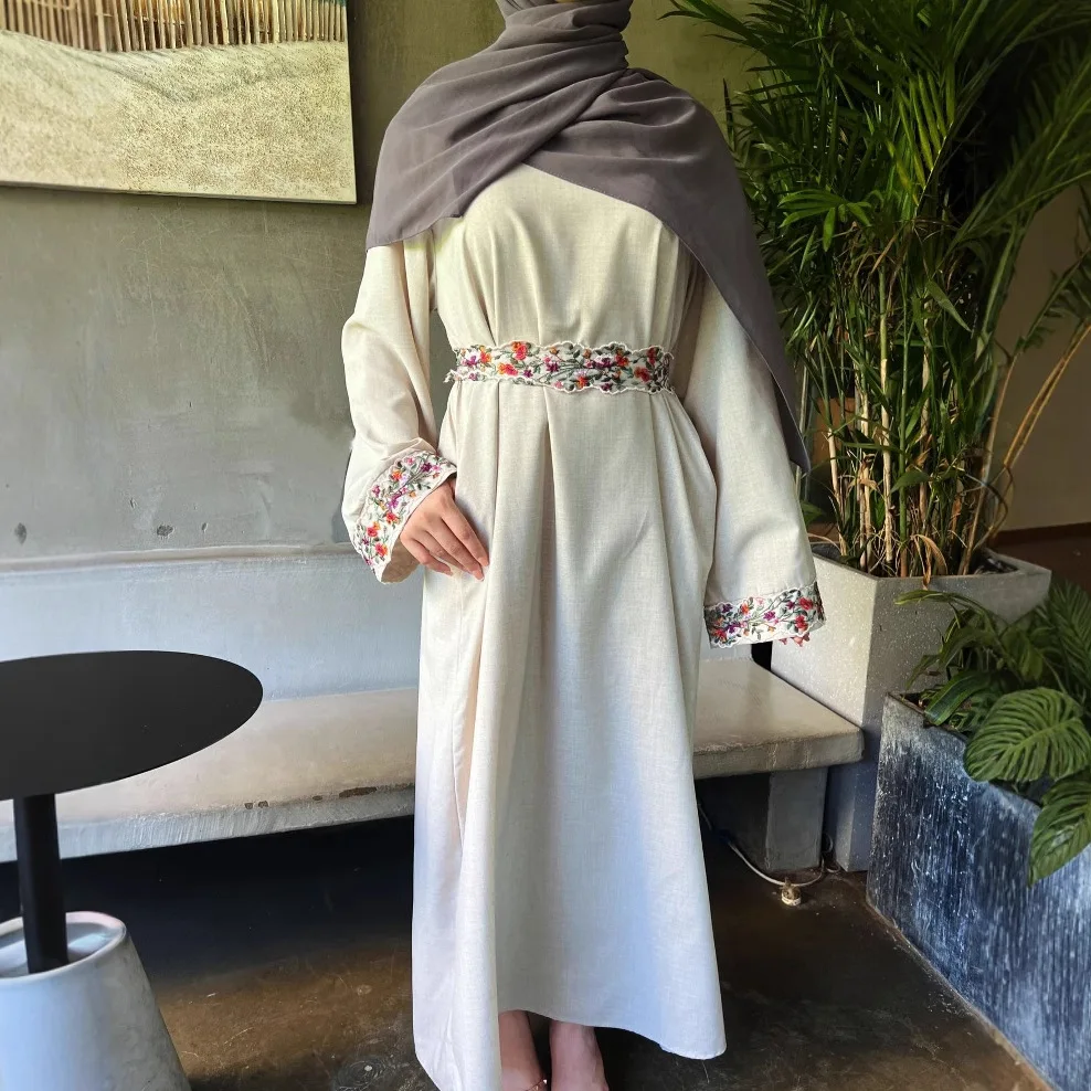 Отзывы о Новая мусульманская одежда льняное платье Абая с вышивкой длинный халат свободное макси цветочным принтом и высокой талией Ближний Восток Турецкий Дубай Арабский