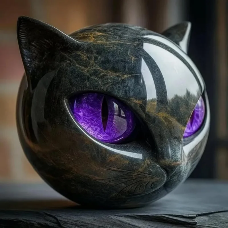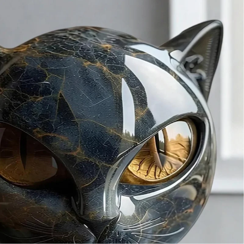 Отзывы о Роскошная каменная скульптура черного кота креативная мини-смола голова кошки настольные украшения мраморная текстура кошачий камень подарки для любителей кошек